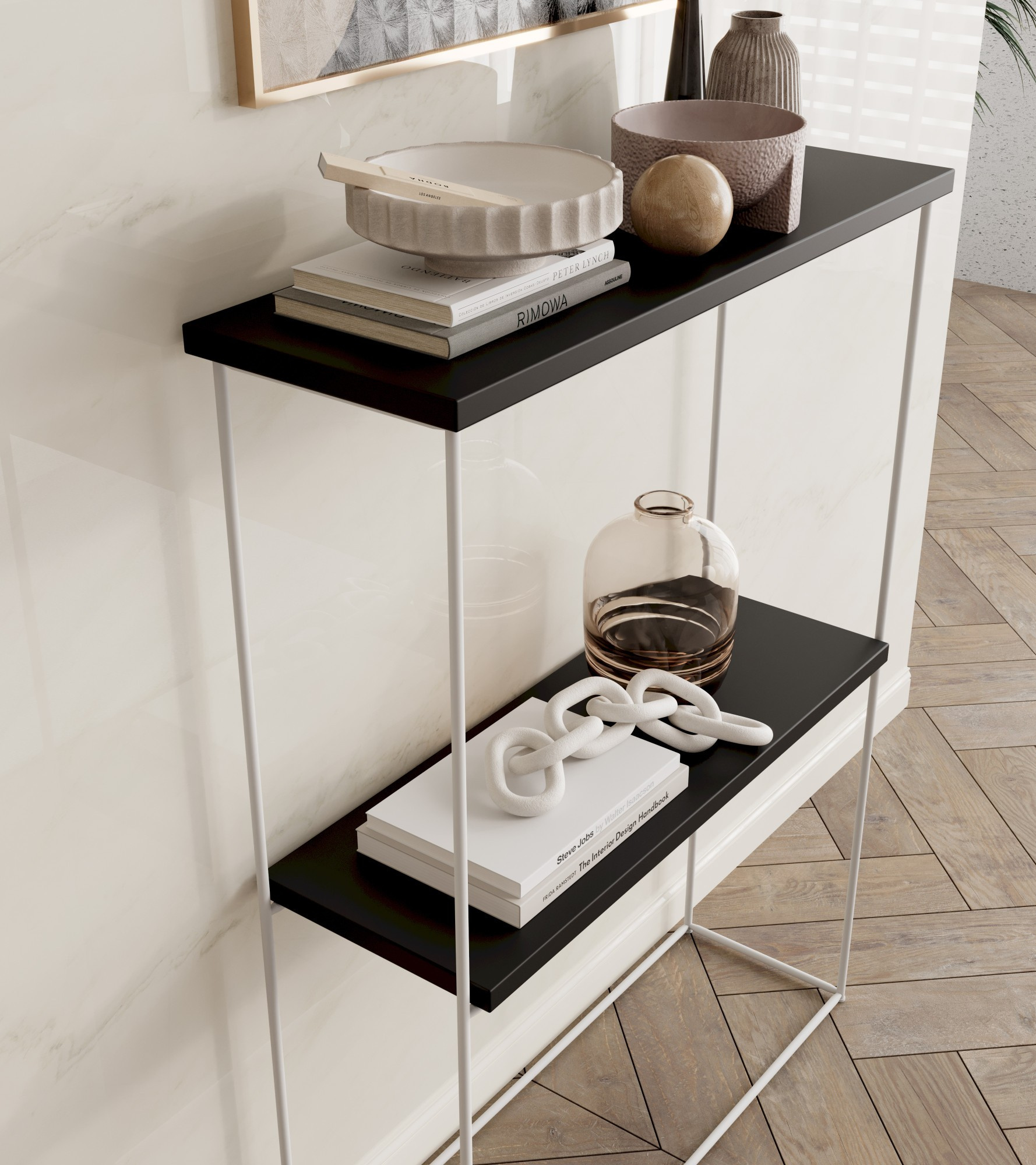 Konzola Velo z drátu je elegantní a moderní prvek vybavení interiéru, který se vyznačuje minimalistickým designem a vysokou funkčností. Konzola Velo z drátu je funkční a stylový nábytek, který jistě dodá kouzlo každému interiéru, zároveň nabízí praktická řešení pro ukládání a vystavování předmětů.