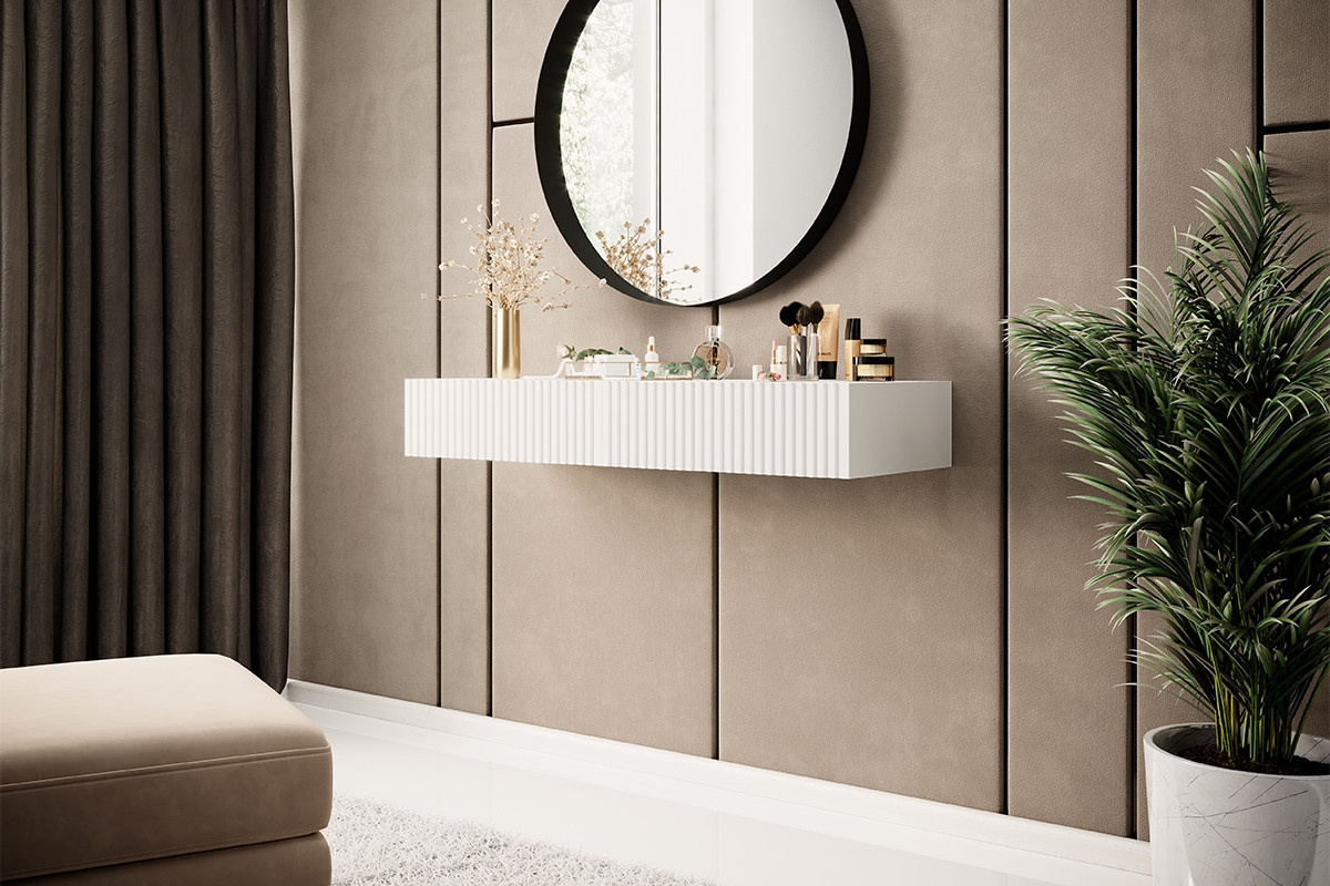 Konzolový / závěsný toaletní stolek Nicole - bílý / bílý mat, šířka: 100, výška: 15, hloubka: 41