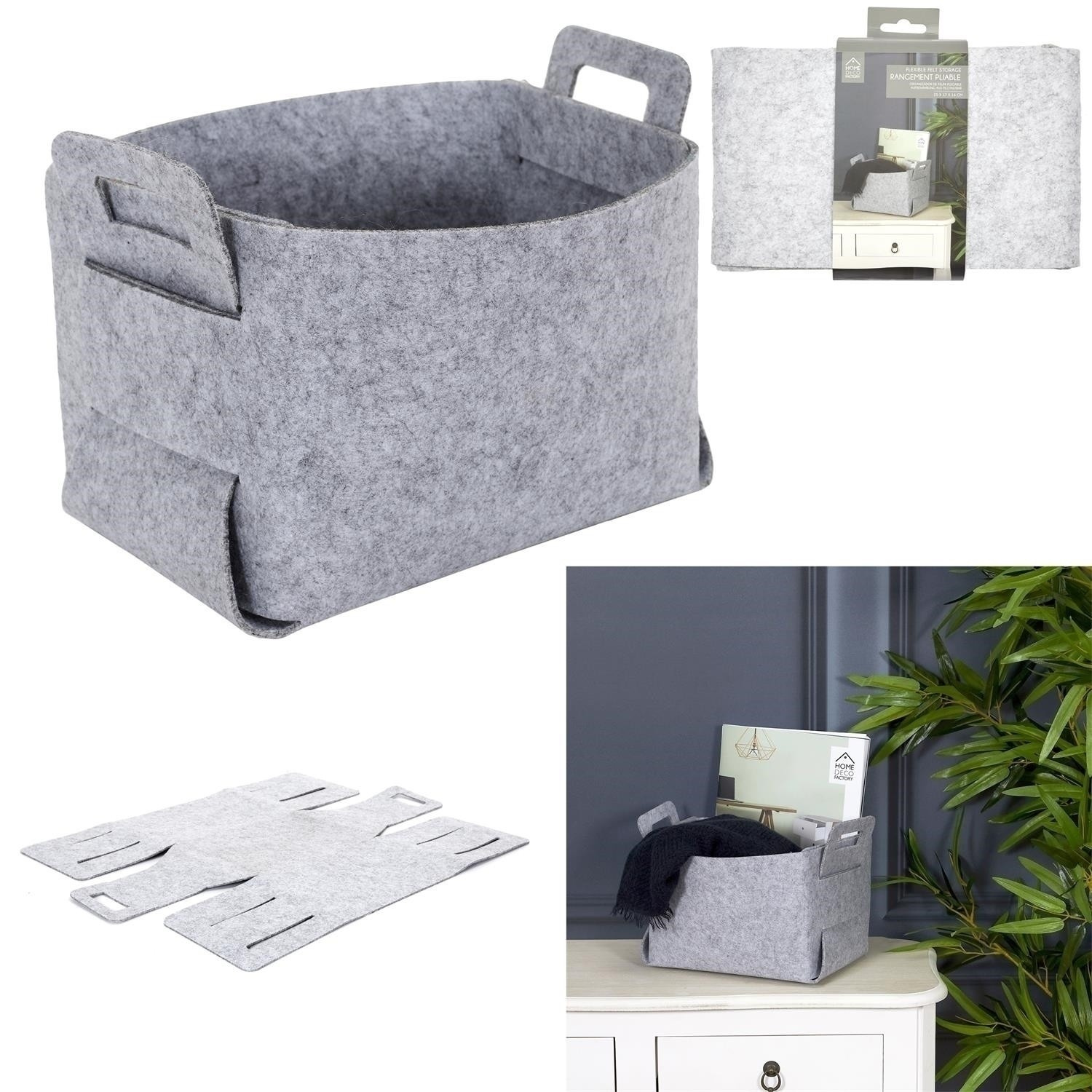 Skládací koš/filcová krabice je ideální nádobou pro ukládání drobných předmětů. Plstěnou krabici lze složit, když ji potřebujeme. Je to ideální nádoba k umístění do předsíně na šály nebo čepice. Materiál: plsť Rozměry kartonu: 23x22x44cm Max. 24 ks v kartonu