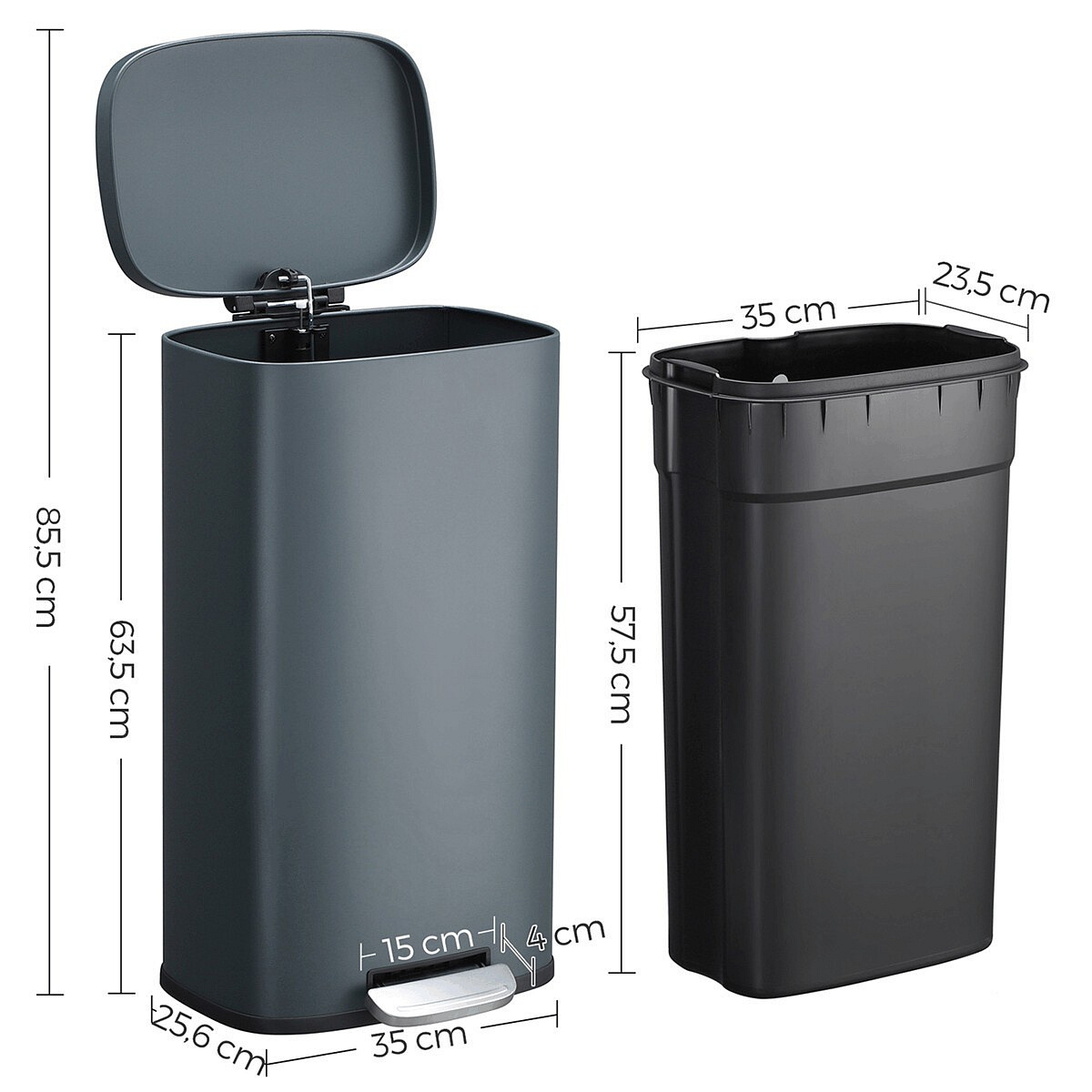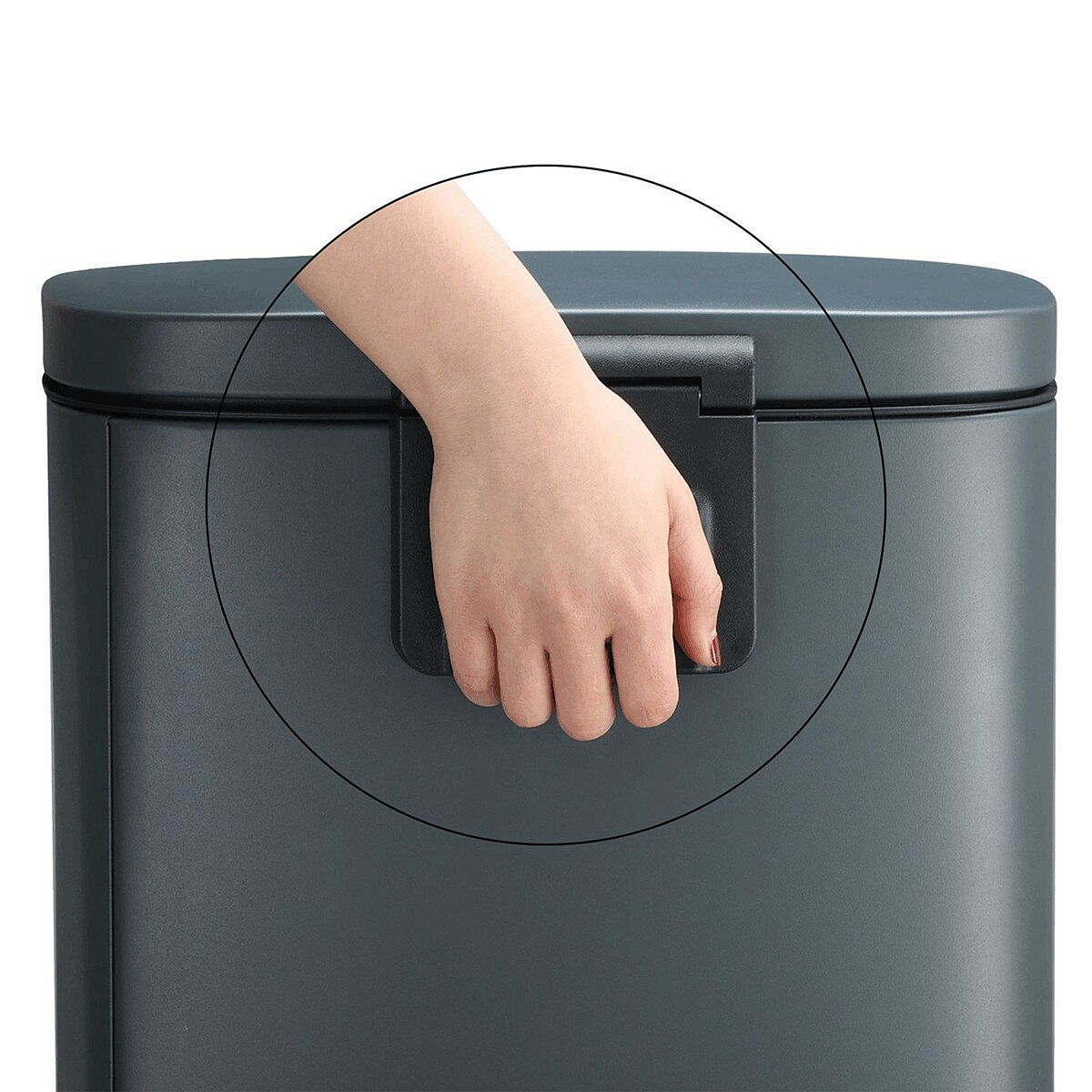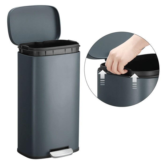 Odpadkový koš s objemem 30 litrů v černém kovovém provedení nabízí pevné a stabilní řešení pro každodenní likvidaci odpadu. Díky praktickému pedálu je možné víko otevírat bez použití rukou, což zvyšuje hygienu a pohodlí při používání. Koš má hladký povrch s matnou úpravou, která se snadno udržuje a odolává běžnému opotřebení. Kompaktní tvar umožňuje umístění do různých prostorů, jako jsou kuchyně, kanceláře nebo koupelny. Spodní část je vybavena protiskluzovou základnou, která zajišťuje stabilitu na podlaze.