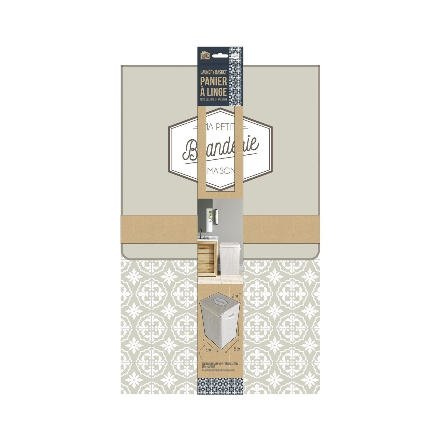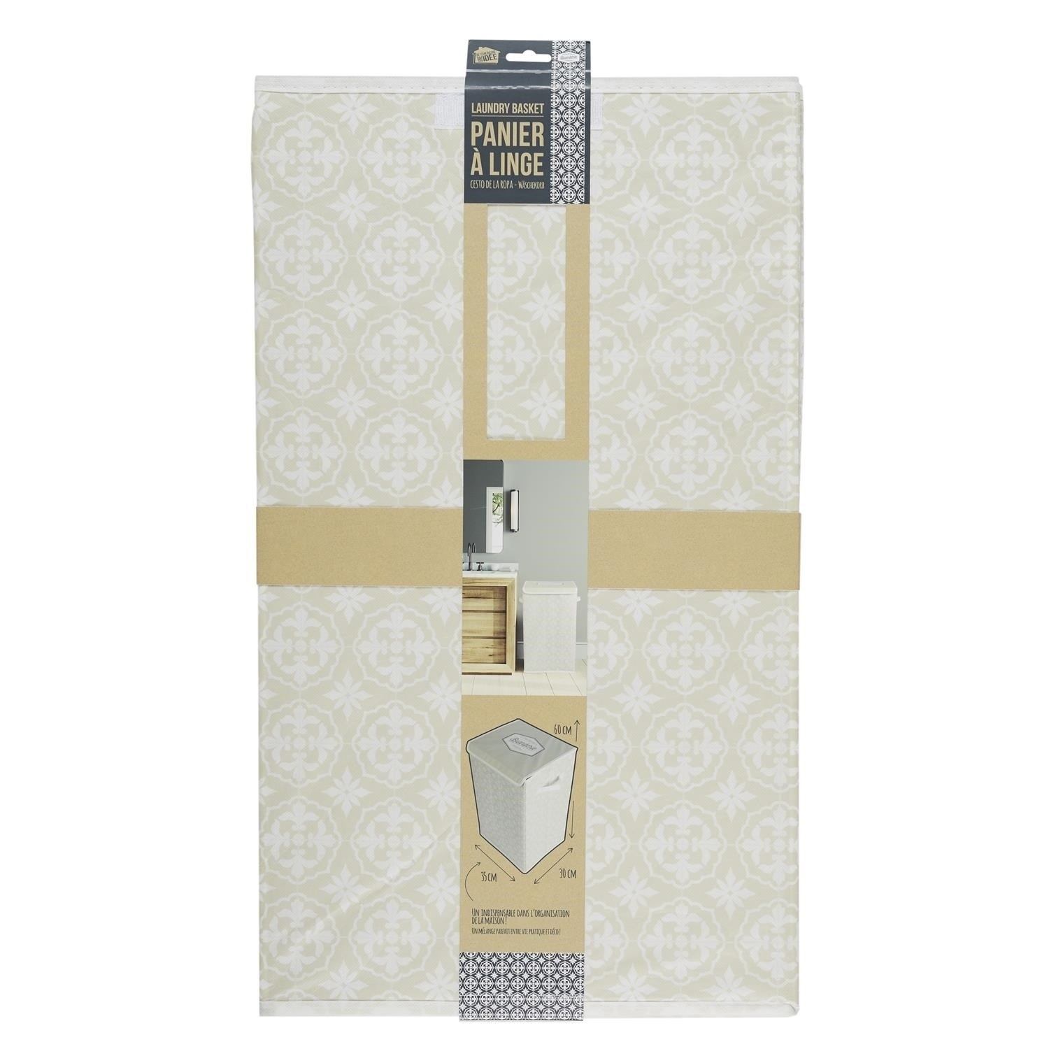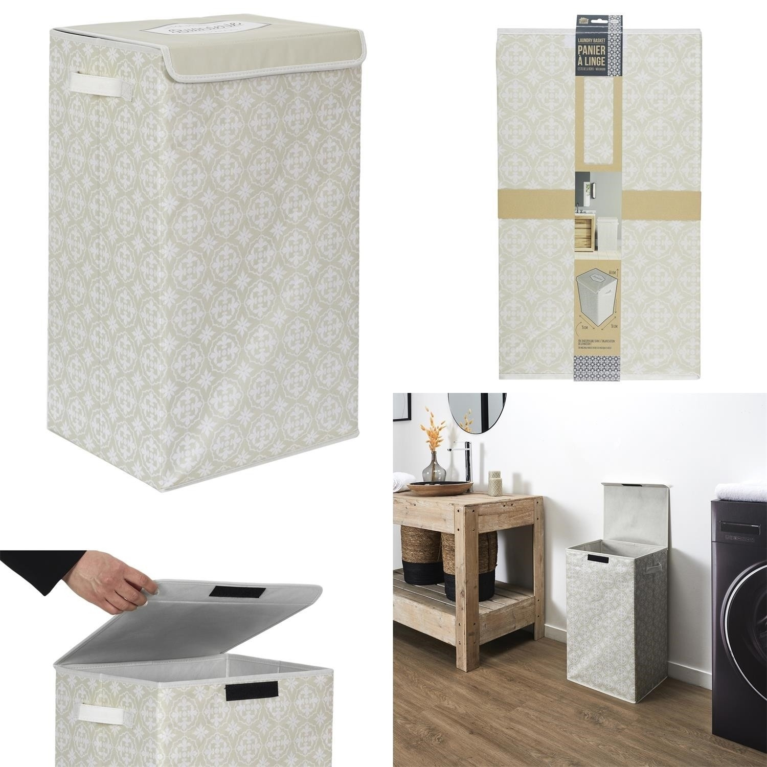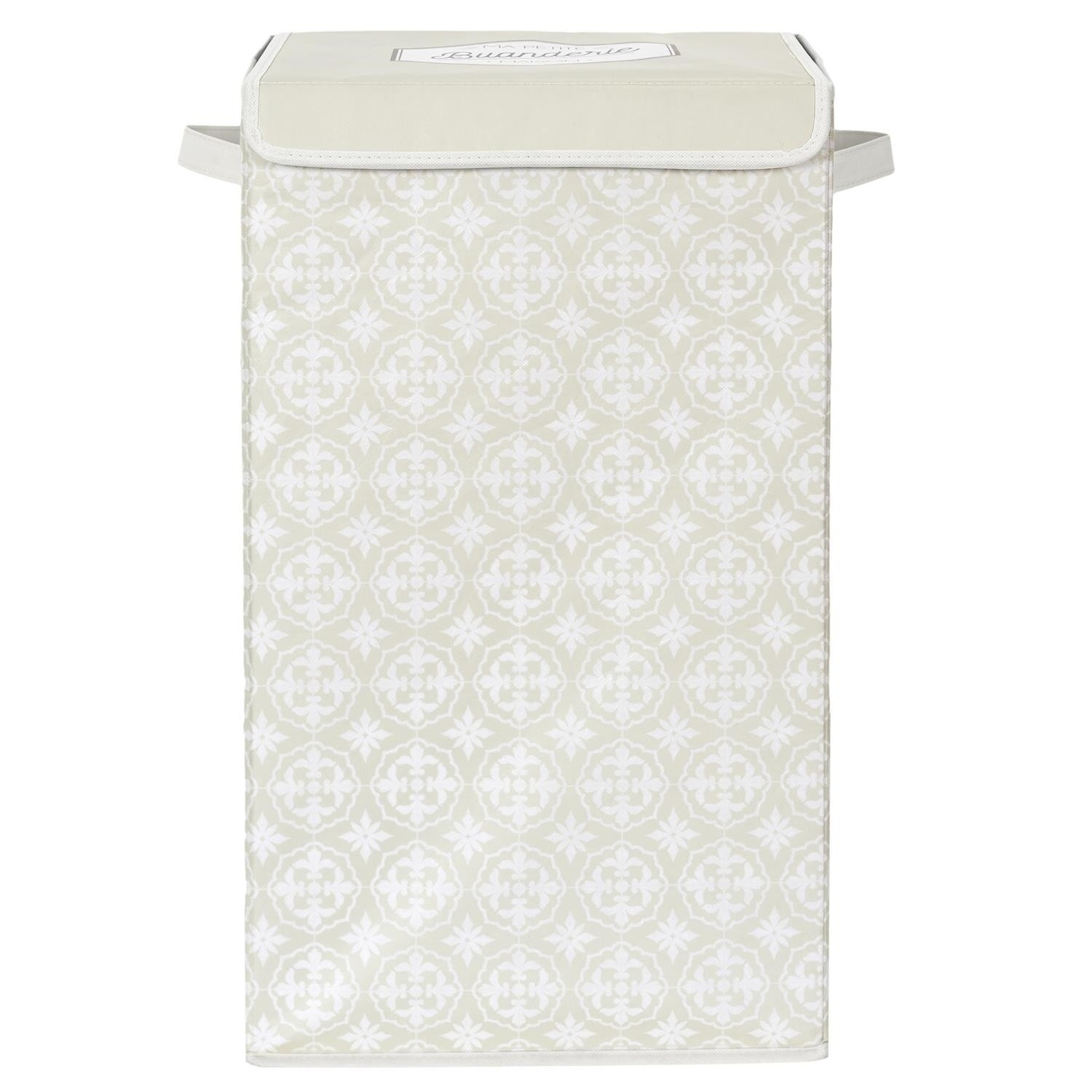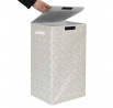 Koš na prádlo byl vyroben z polyesterové tkaniny, která je ideální pro ukládání prádla k praní. Koš je vybaven 2 úchyty, které umožňují pohodlné přenášení koše, a víkem na suchý zip. Zajímavý vzor tkaniny a minimalistický tvar činí koš nejen funkčním, ale také představuje specifickou ozdobu místnosti.