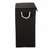 Vysoký látkový koš v černé barvě ve tvaru krabice s uchy z provázků a víkem, navíc potažený hebkou látkou, bude skvělou volbou pro každou domácnost. Praktický a stylový prostředek k tomu, jak efektivně schovat prádlo a zároveň přidat do prostoru na oko příjemný dekorační prvek.