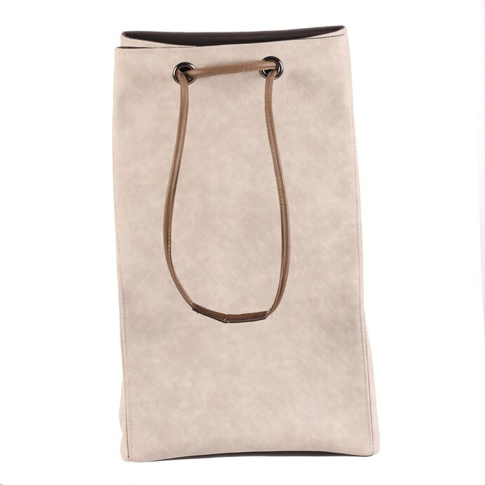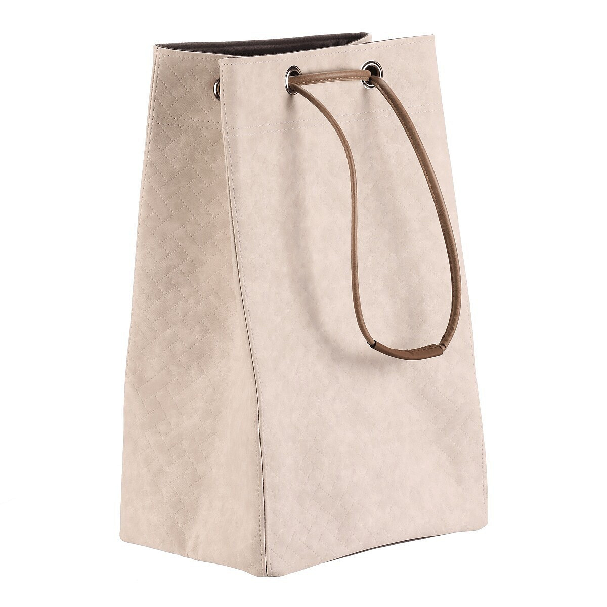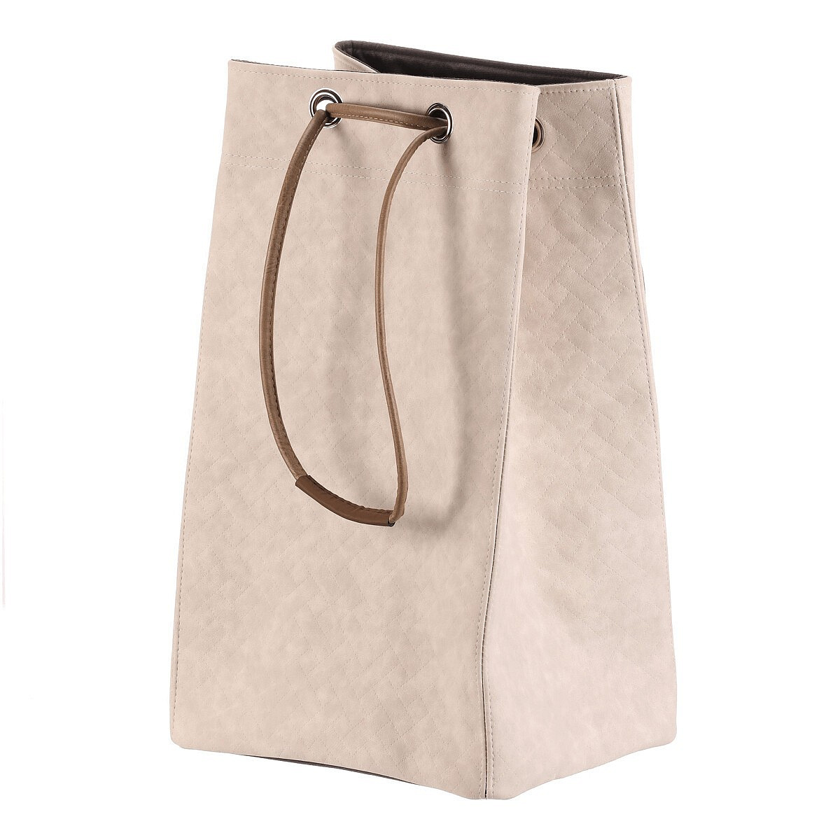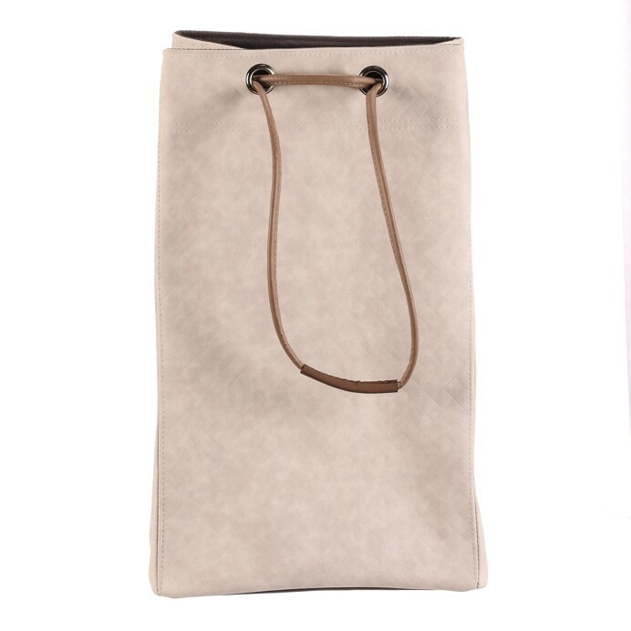 Látkový koš na prádlo ve tvaru praktického vaku zaujme moderním vzhledem i funkčností. Má jemnou krémovou barvu, koženkový povrch a horní část se snadno uzavírá pomocí stahovací šňůry. Díky lehké konstrukci se s ním dobře manipuluje, je dobře skladovatelný a v interiéru působí i jako stylový doplněk, není tak pouze úložným prostorem.