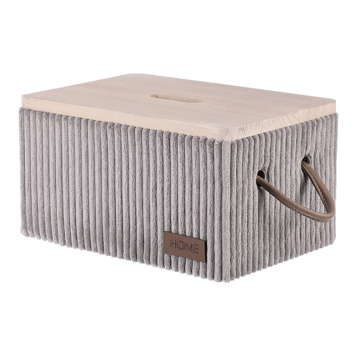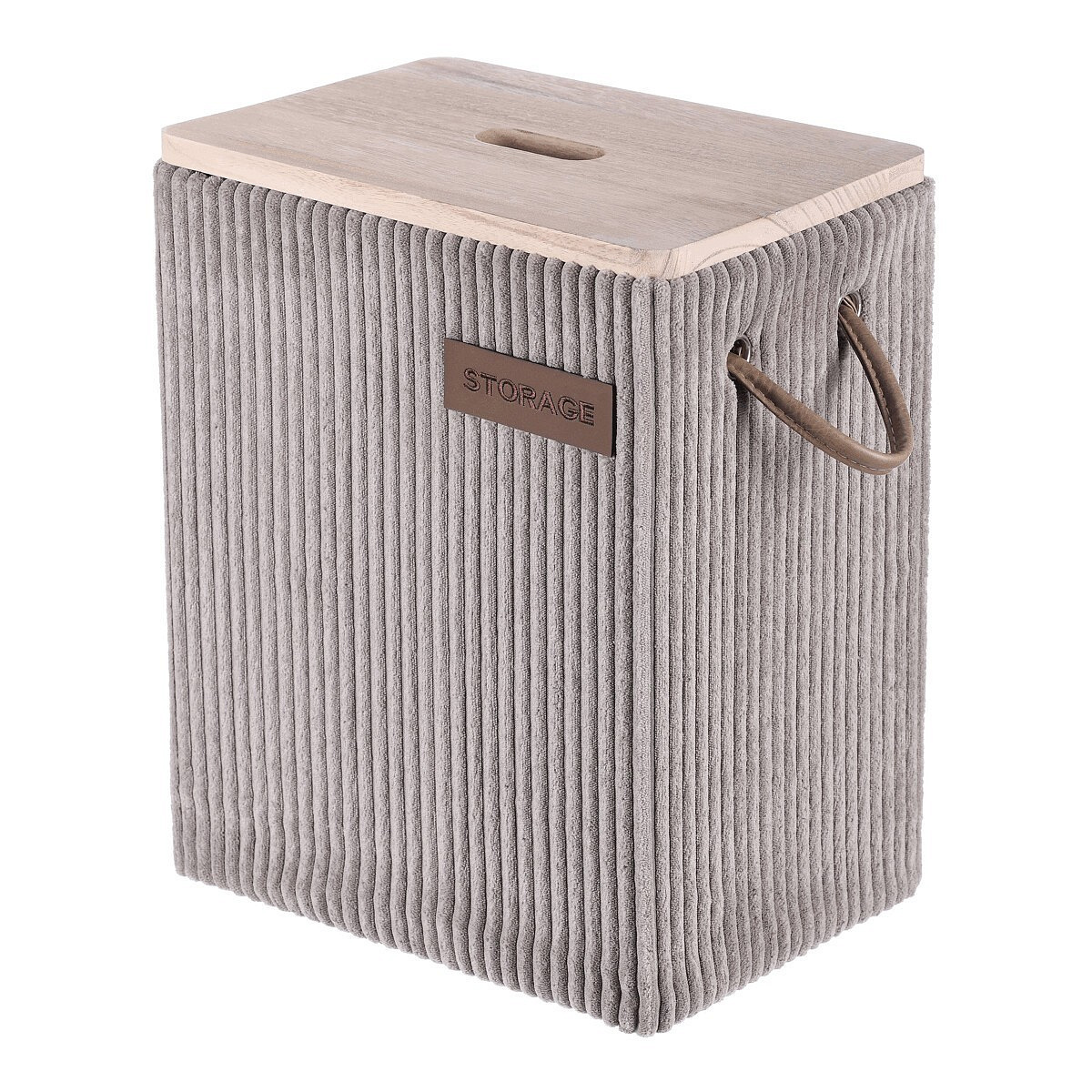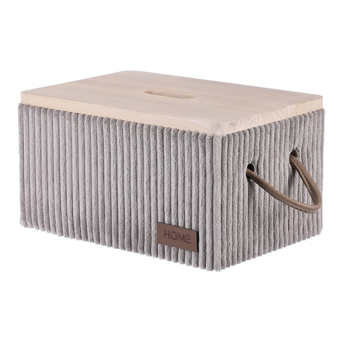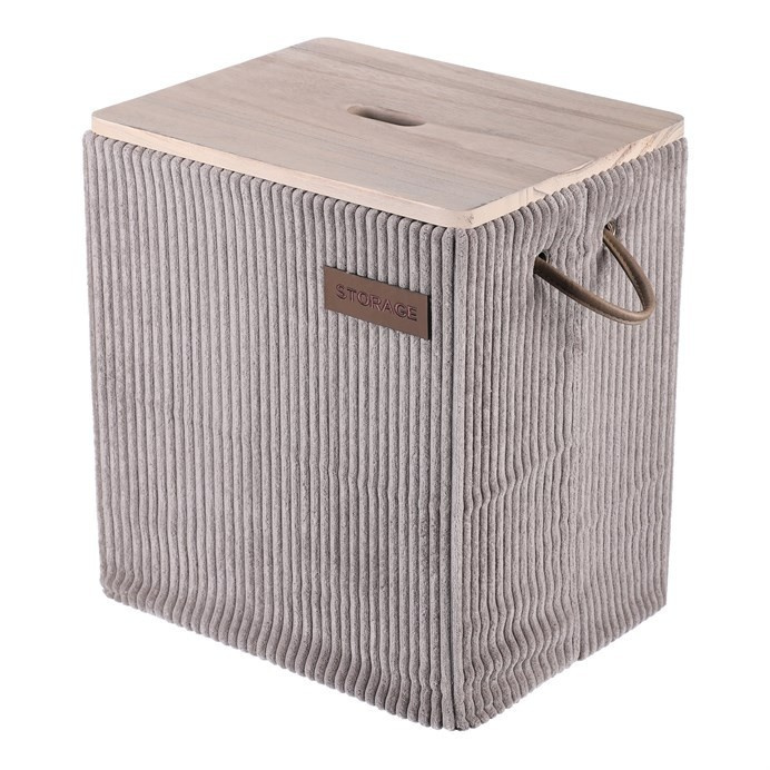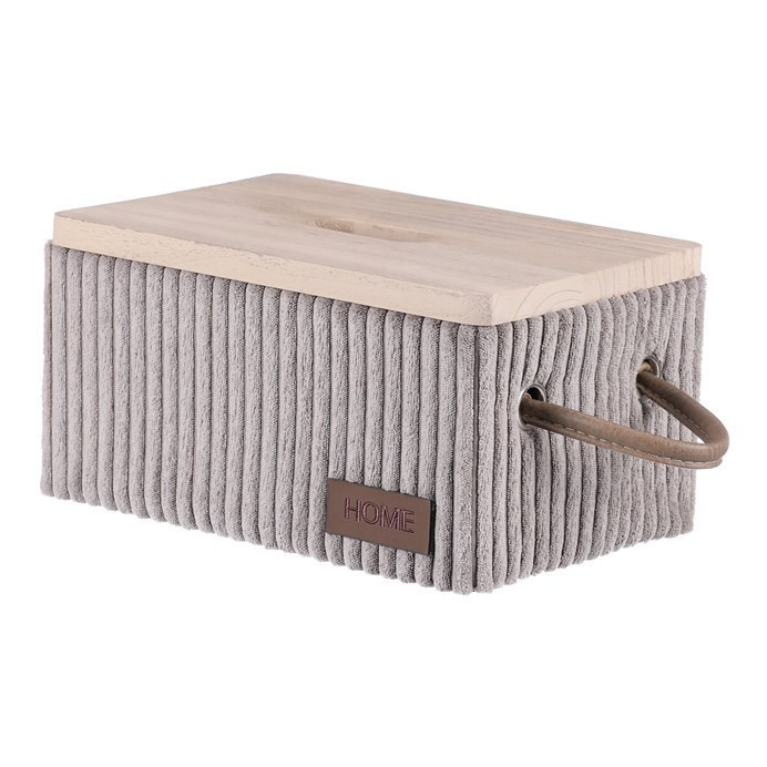 Sada látkových prádelních košů v šedé barvě s elegantním dřevěným víkem a praktickými poutky po stranách. Obsahuje celkem 5 různých velikostí, které jsou nejen funkční pro váš domov, ale i velmi pěkným a estetickým doplňkem v místnosti.