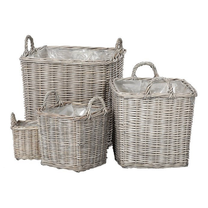 Proutěný koš se čtvercovým půdorysem v přírodní našedivělé barvě představuje skvělou variantu obalu pro vaše květiny. Nabízíme vám je v sadě čtyř různých velikostí, tak abyste mohli vybrat tu správnou míru pro vaší vybranou rostlinu. Materiál z proutí dodává do interiéru příjemný a rustikální vzhled, který navodí útulnější a atmosféru. Tento koš je především estetickým doplňkem, protože je celý pouze a jen z proutí. Proto je důležité, aby květiny v koši byly umístěny již ve svém obalu a nehrozilo prosakování vody.