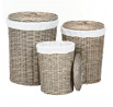 Koš proutěný - prádelní, s víkem, šedý, cena za sadu 3 ks