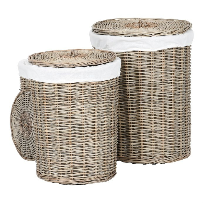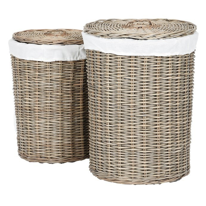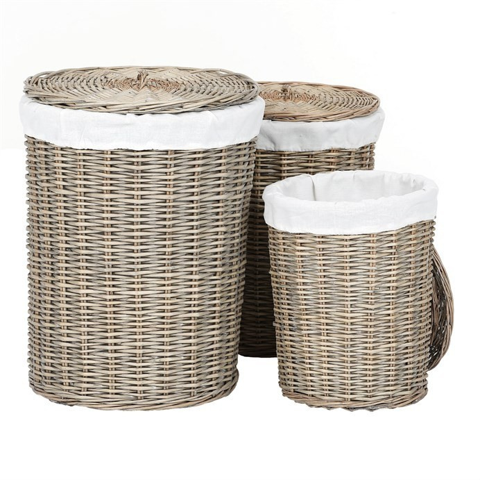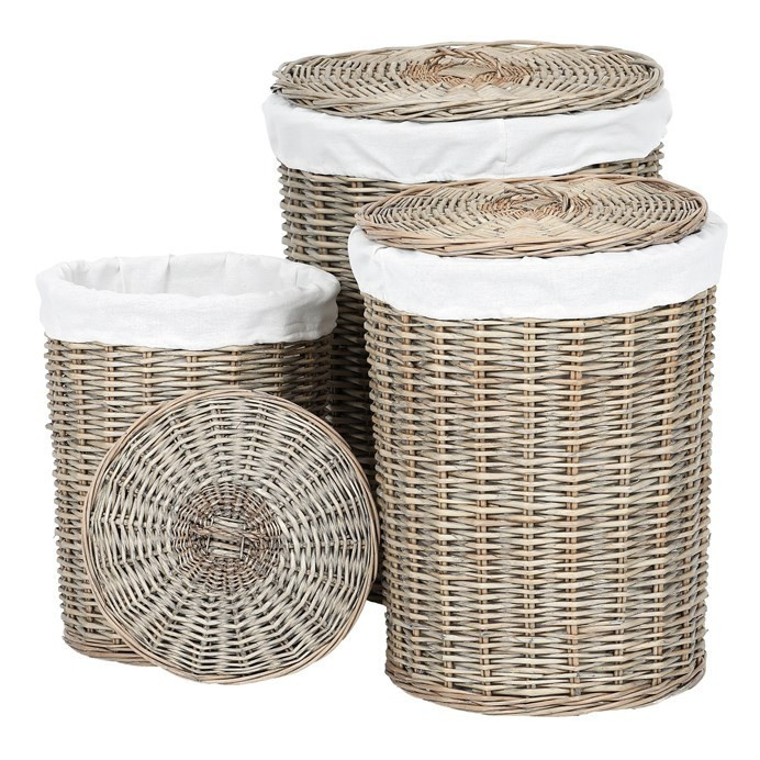 Koš proutěný - prádelní, s víkem, šedý, cena za sadu 3 ks