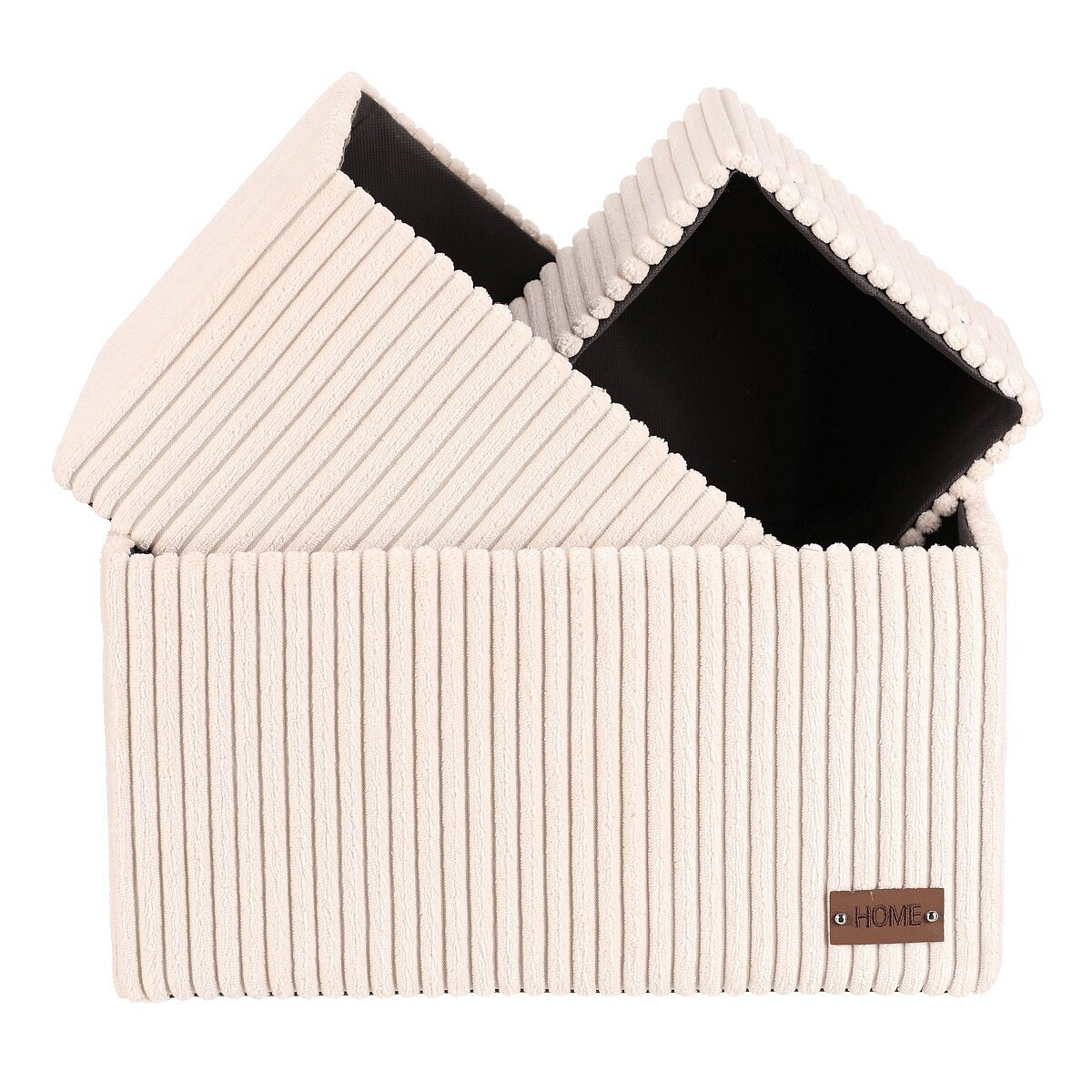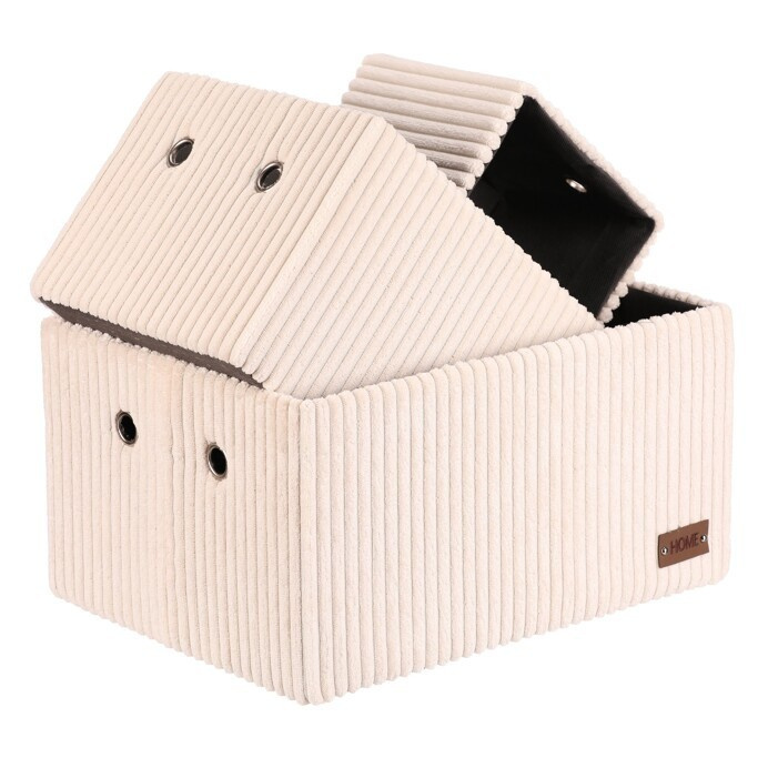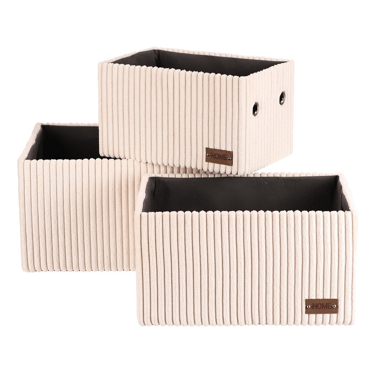 Koš regálový - manšestrový potah, krémový, cena za sadu 3 ks