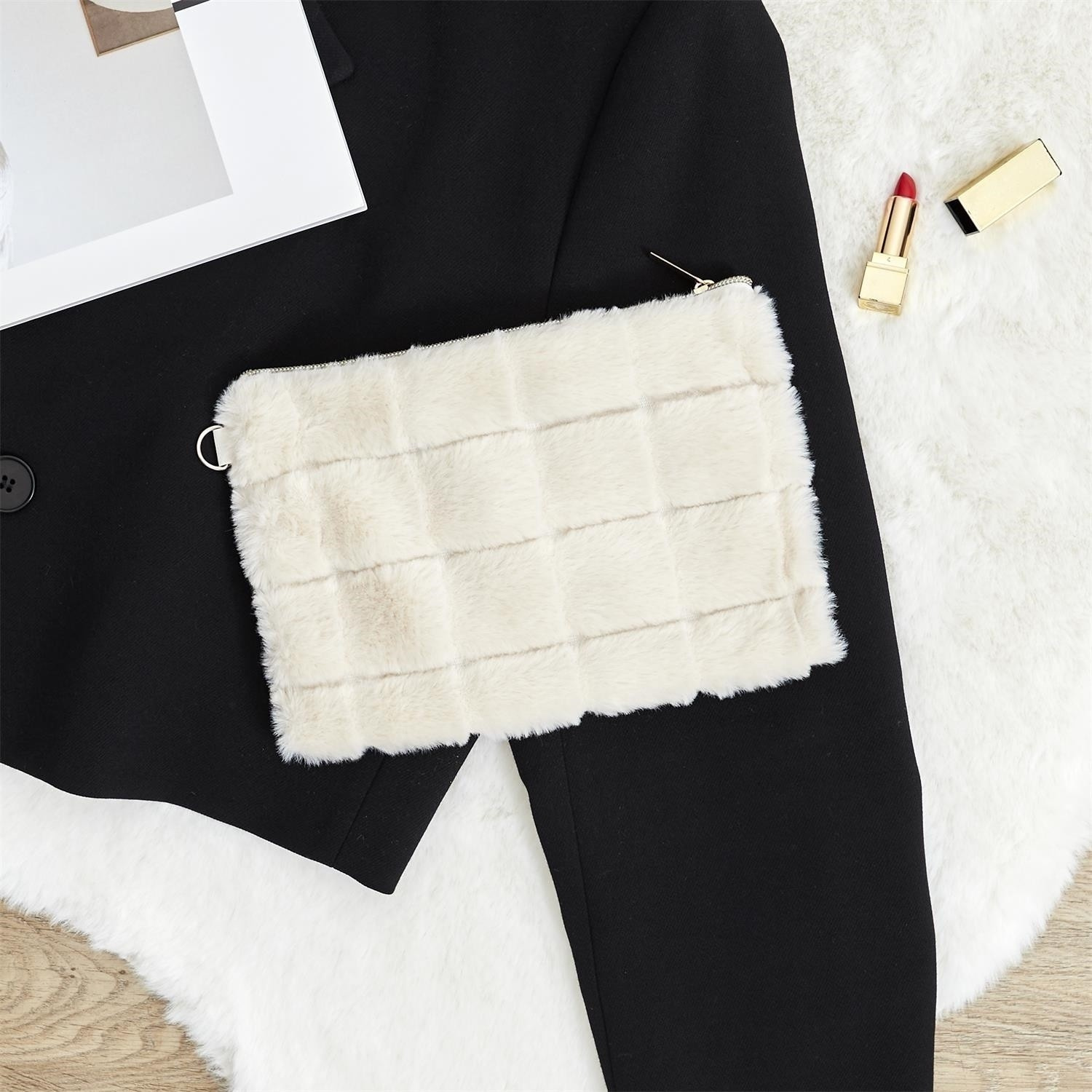 Elegantní taštička v krémové barvě, vyrobená z měkké kožešiny, která spojuje funkčnost s módním vzhledem. Ideální pro ukládání drobných předmětů, jako jsou klíče, telefon nebo kosmetika. Kompaktní a praktická, skvěle se hodí na každý den i na cesty. Jemný design a luxusní materiál činí z tohoto doplňku módní a praktický prvek každého outfitu.