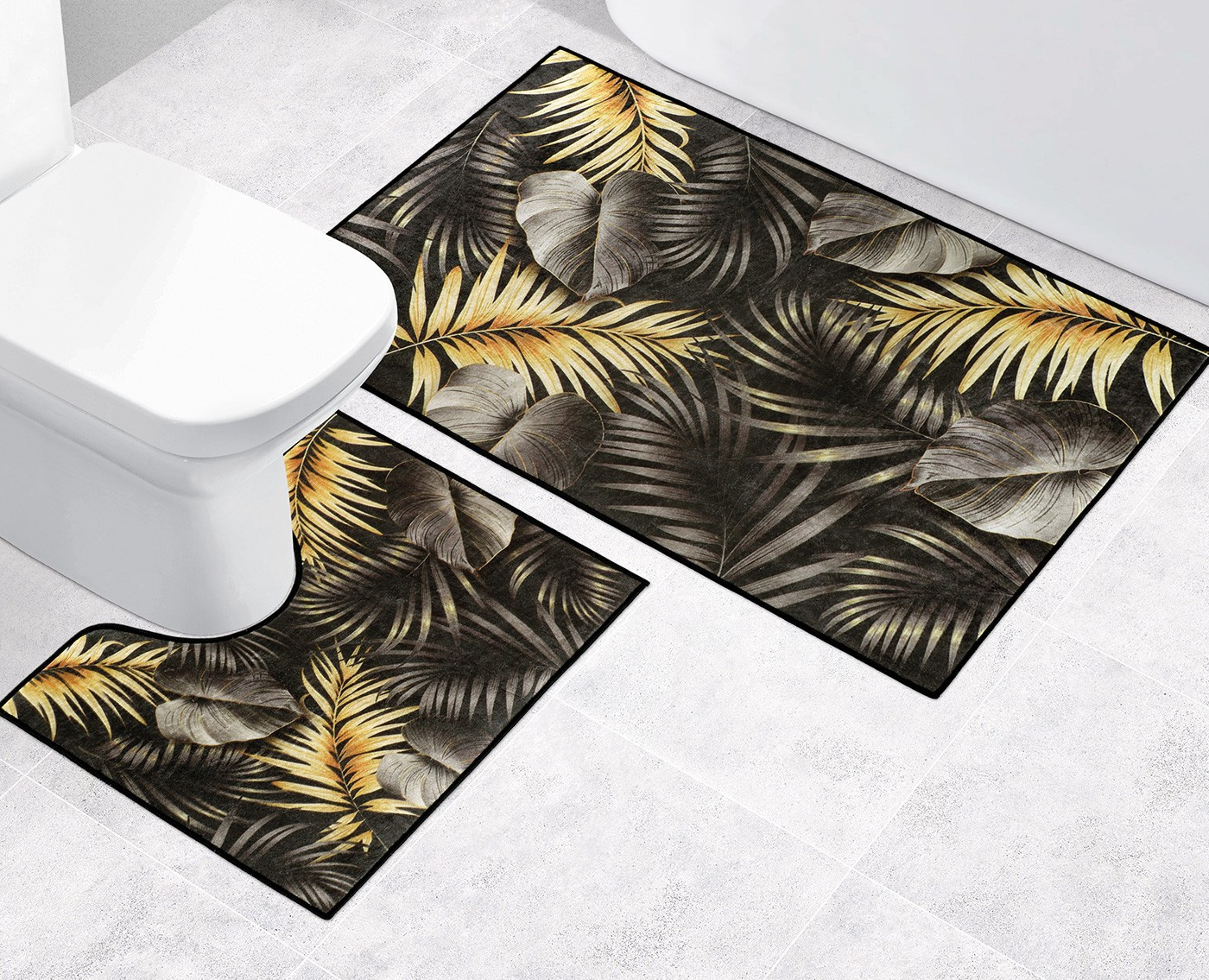 Koupelnová sada předložek 3D 60x100+60x50cm Listy zlaté