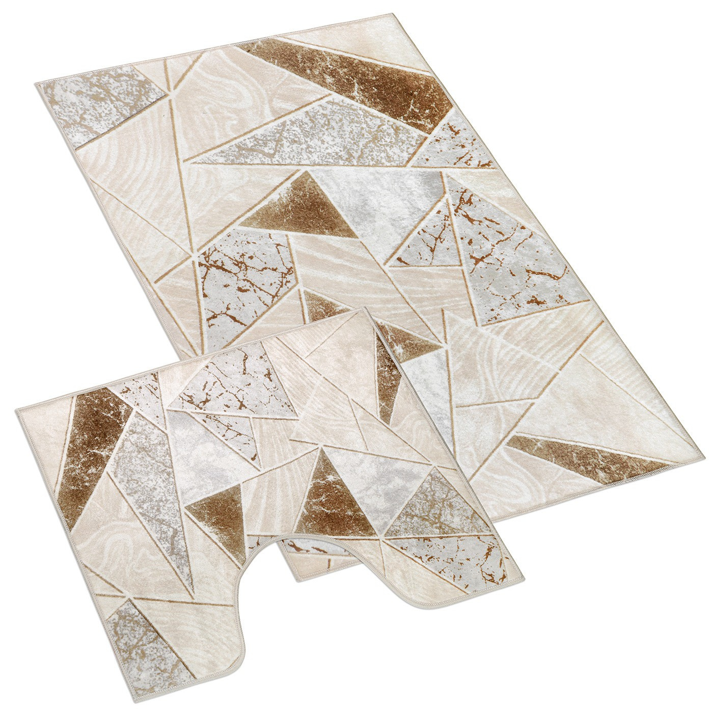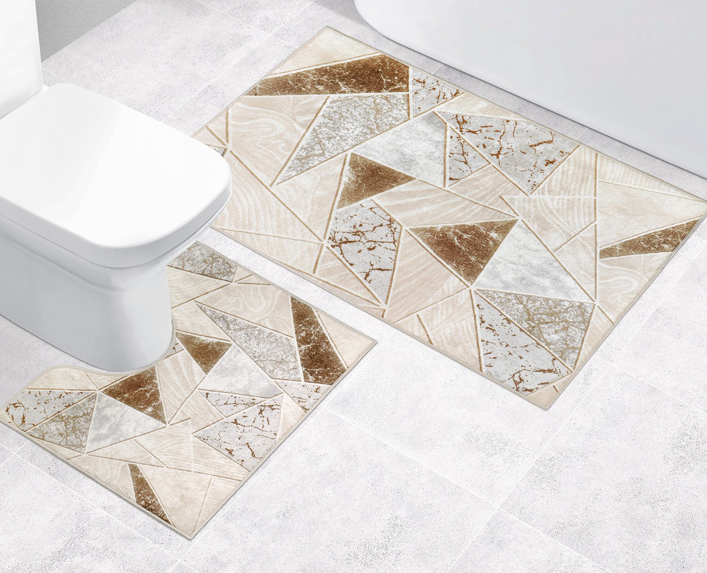 Koupelnová sada předložek 3D 60x100+60x50cm Mramorová dlažba béžová