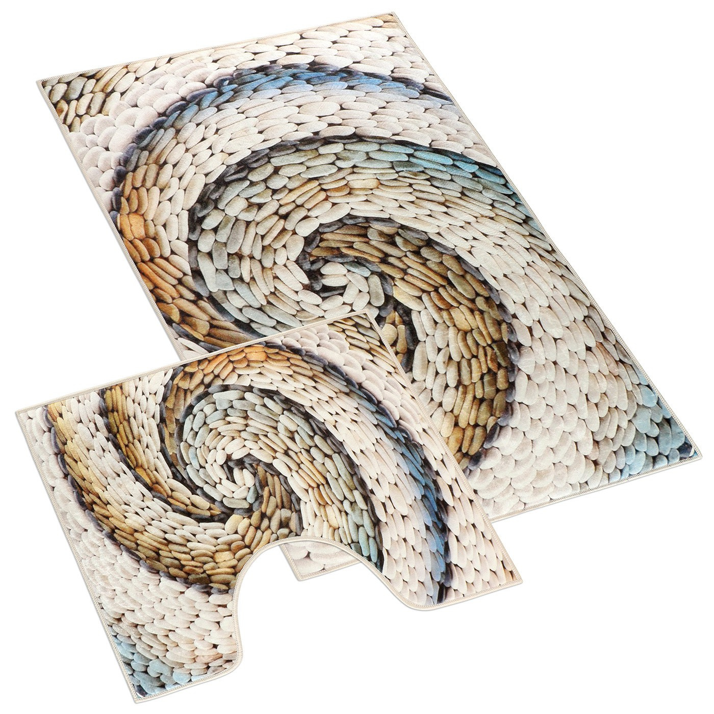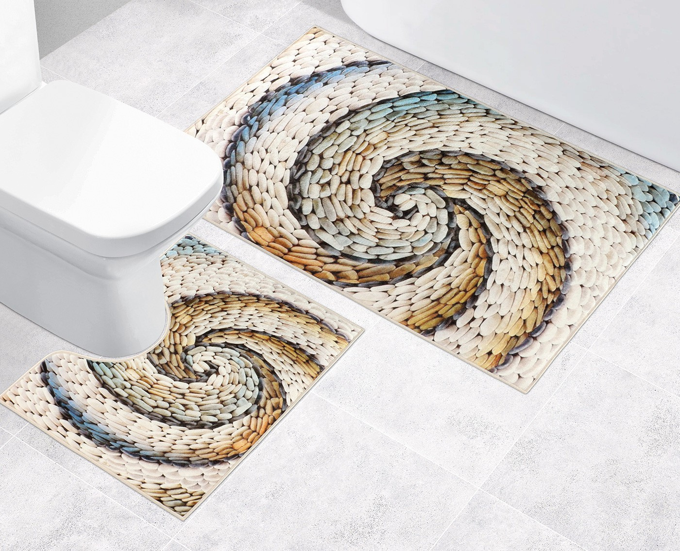 Koupelnová sada předložek 3D 60x100+60x50cm Oblázky béžové