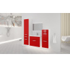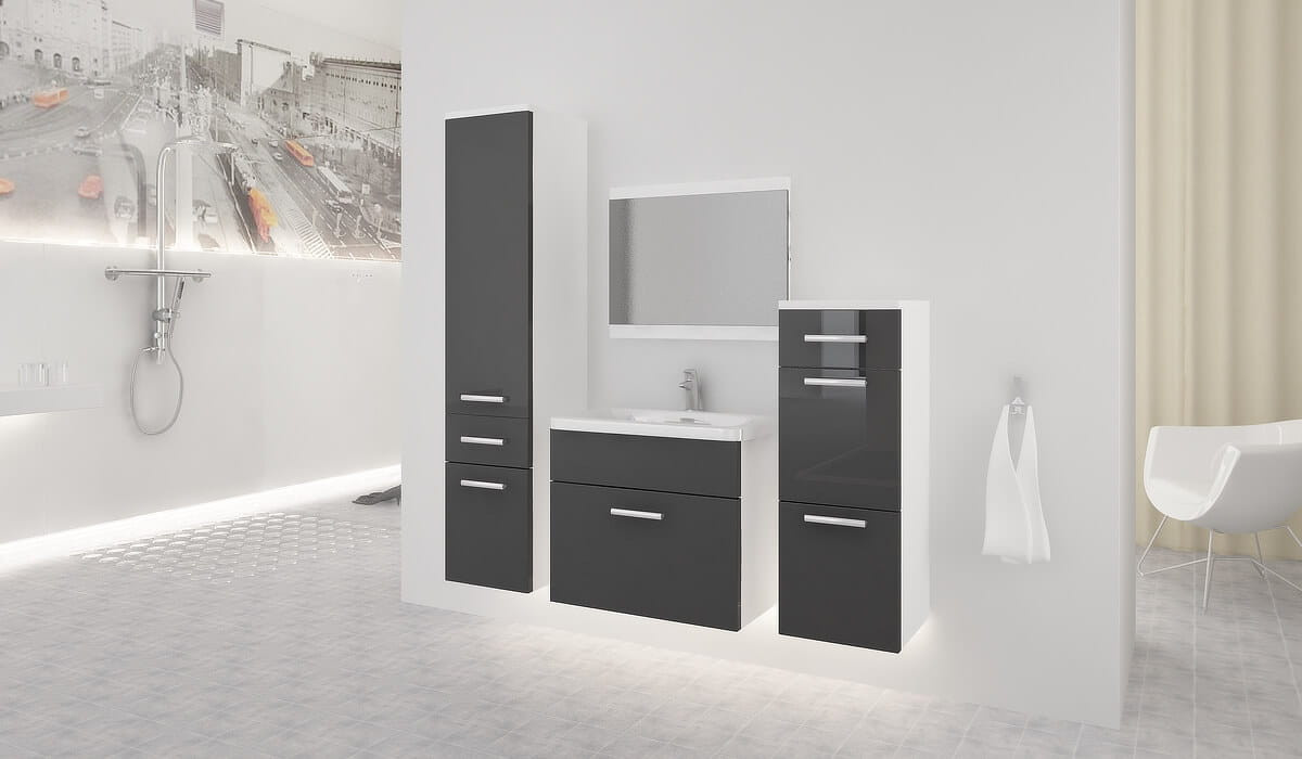 Moderní a jednoduchá koupelnová sestava, která splní svůj praktický i dekorativní účel. Sestava se skládá ze dvou závěsných skříněk, zrcadla a skříňky pod umyvadlo včetně umyvadla. Koupelnová sestava má plastové úchyty v šedé barvě. Dvířka jsou vyrobena v lesku z lamina tloušťky 16 mm v bílé barvě, korpusy jsou v bílém provedení MAT tloušťky lamina 18 mm.. Zboží je dodáváno v demontu se schematickým návodem k montáži. Vyobrazené dekorace nejsou v ceně sestavy. Sestavu nabízíme také v dalších barevných provedeních, které jsou k vidění na vedlejších fotografiích.