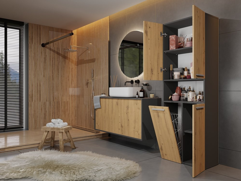 Koupelnová skříňka NOELI 3DK1K, Dub antracit/ Dub artisan