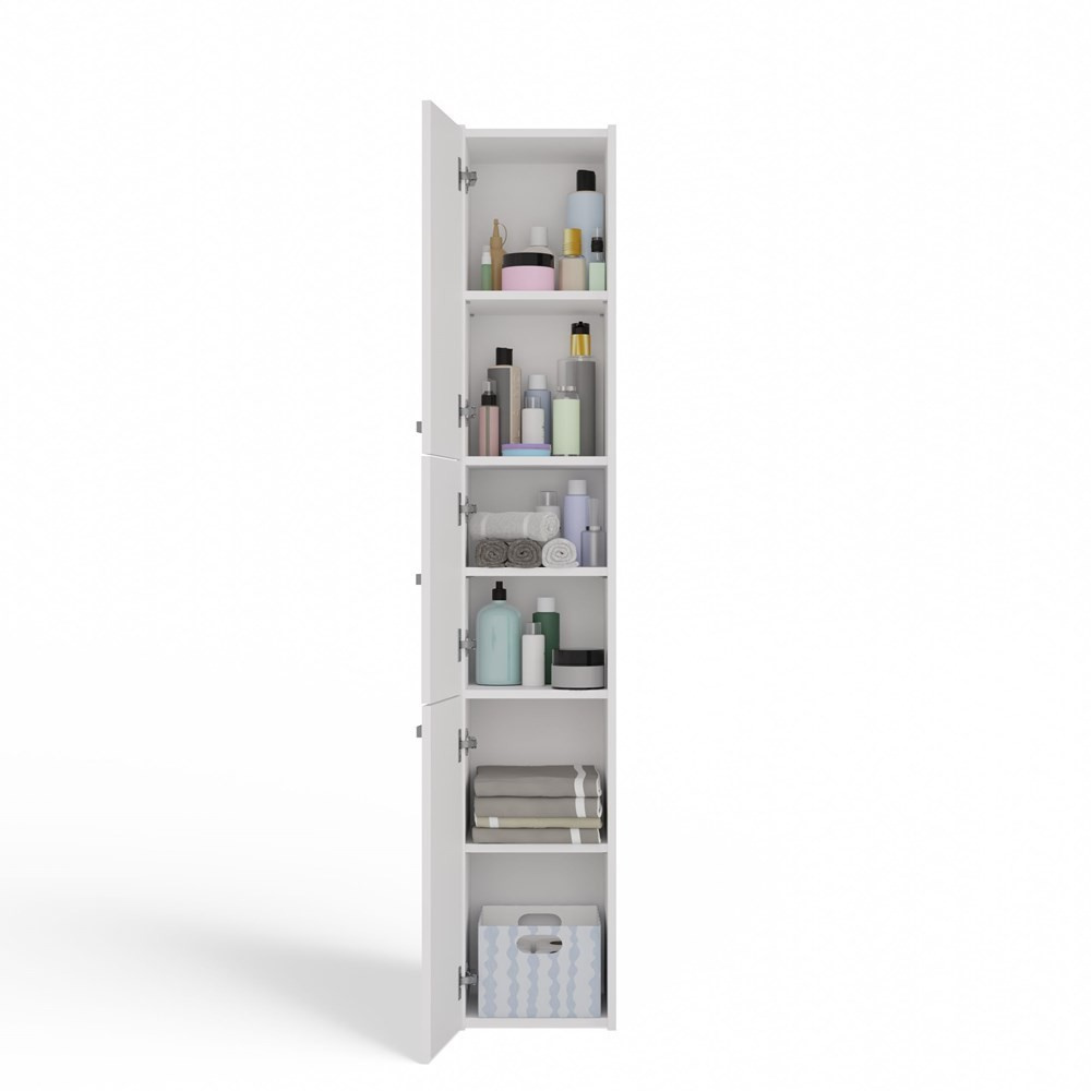 Vysokou koupelnovou skříňku Saly v minimalistickém designu ocení milovníci jednoduchosti a elegance. Je vyrobená ze snadno udržovatelného lamina, hrany jsou povrchově upravené ABS plastem - vyznačuje se vysokou mechanickou a chemickou odolností.
