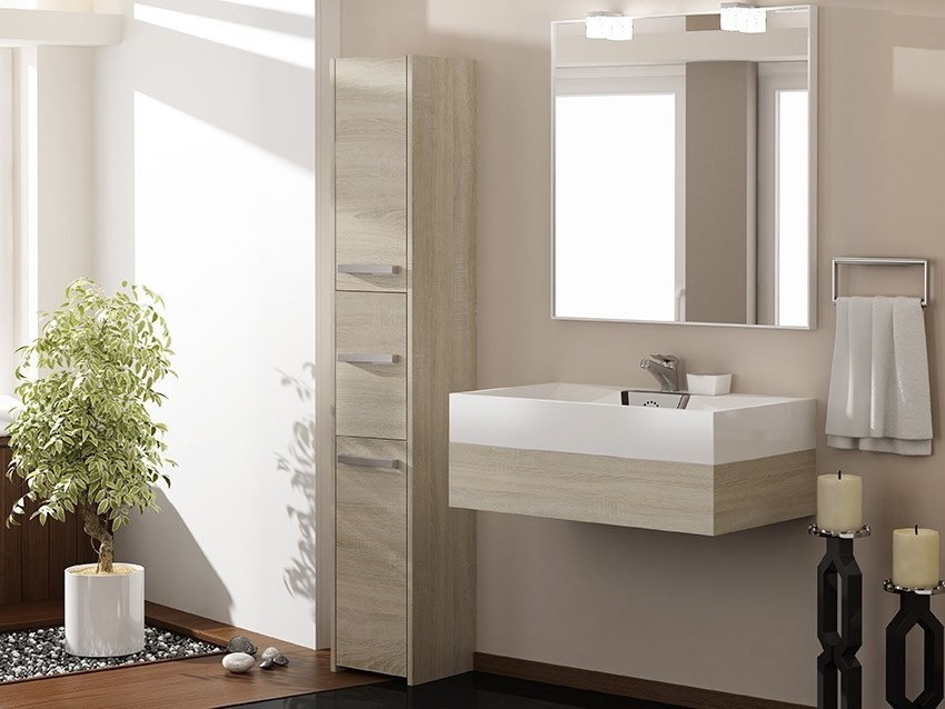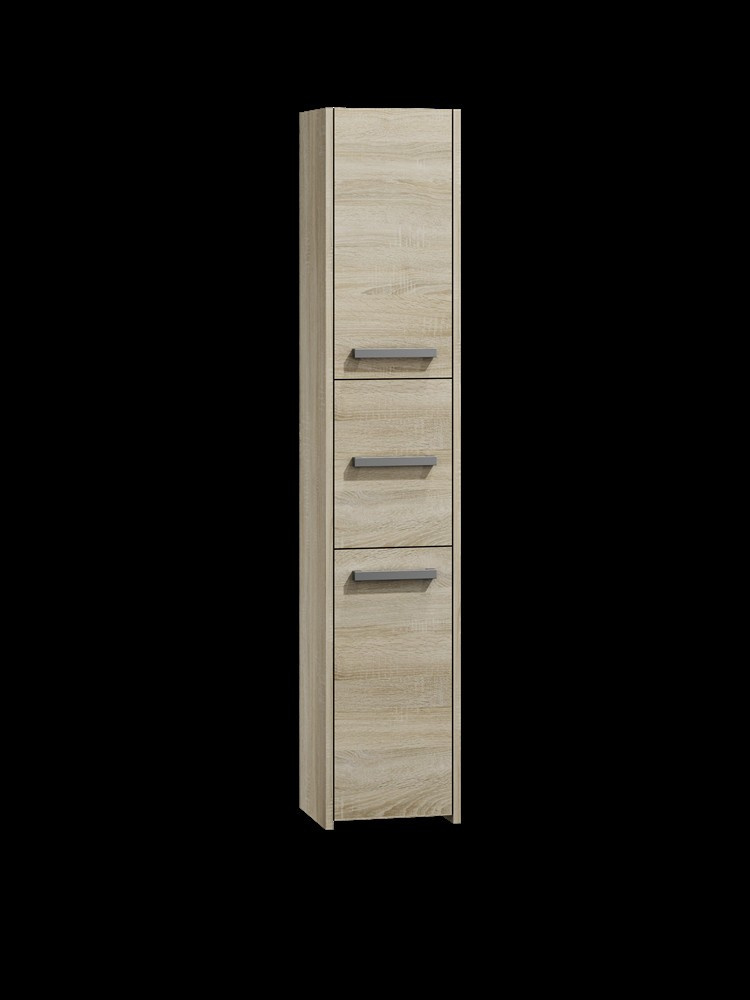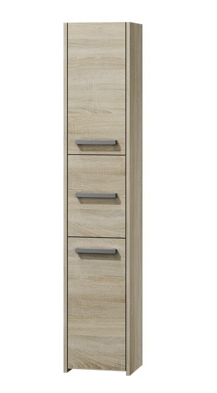 Vysokou koupelnovou skříňku Saly v minimalistickém designu ocení milovníci jednoduchosti a elegance. Je vyrobená ze snadno udržovatelného lamina, hrany jsou povrchově upravené ABS plastem - vyznačuje se vysokou mechanickou a chemickou odolností.