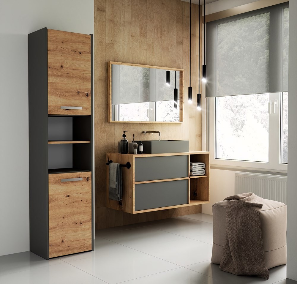 Koupelnová skříň SALY 40 2D, Dub antracit/Dub artisan