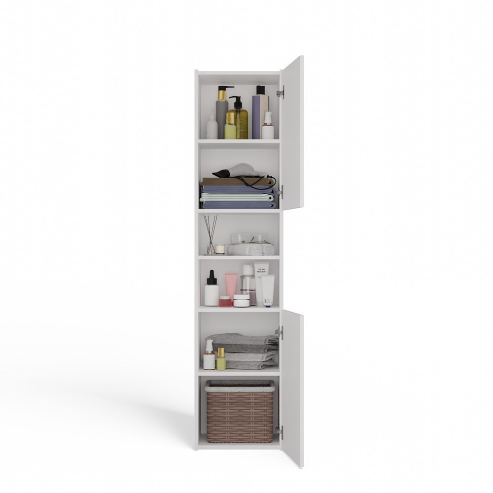Vysokou koupelnovou skříňku Saly v minimalistickém designu ocení milovníci jednoduchosti a elegance. Je vyrobená ze snadno udržovatelného lamina, hrany jsou povrchově upravené ABS plastem - vyznačuje se vysokou mechanickou a chemickou odolností.