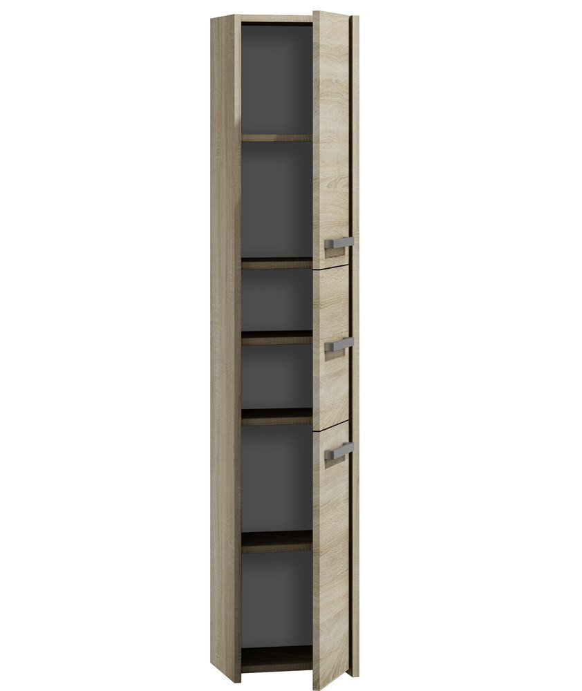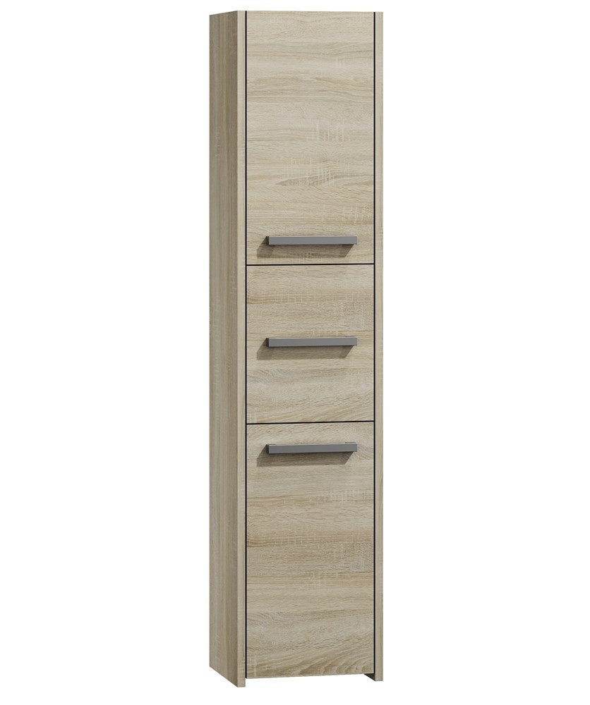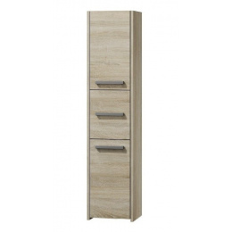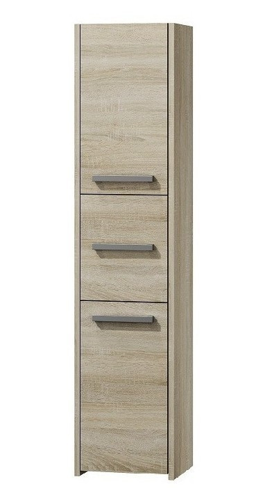 Vysokou koupelnovou skříňku Saly v minimalistickém designu ocení milovníci jednoduchosti a elegance. Je vyrobená ze snadno udržovatelného lamina, hrany jsou povrchově upravené ABS plastem - vyznačuje se vysokou mechanickou a chemickou odolností.