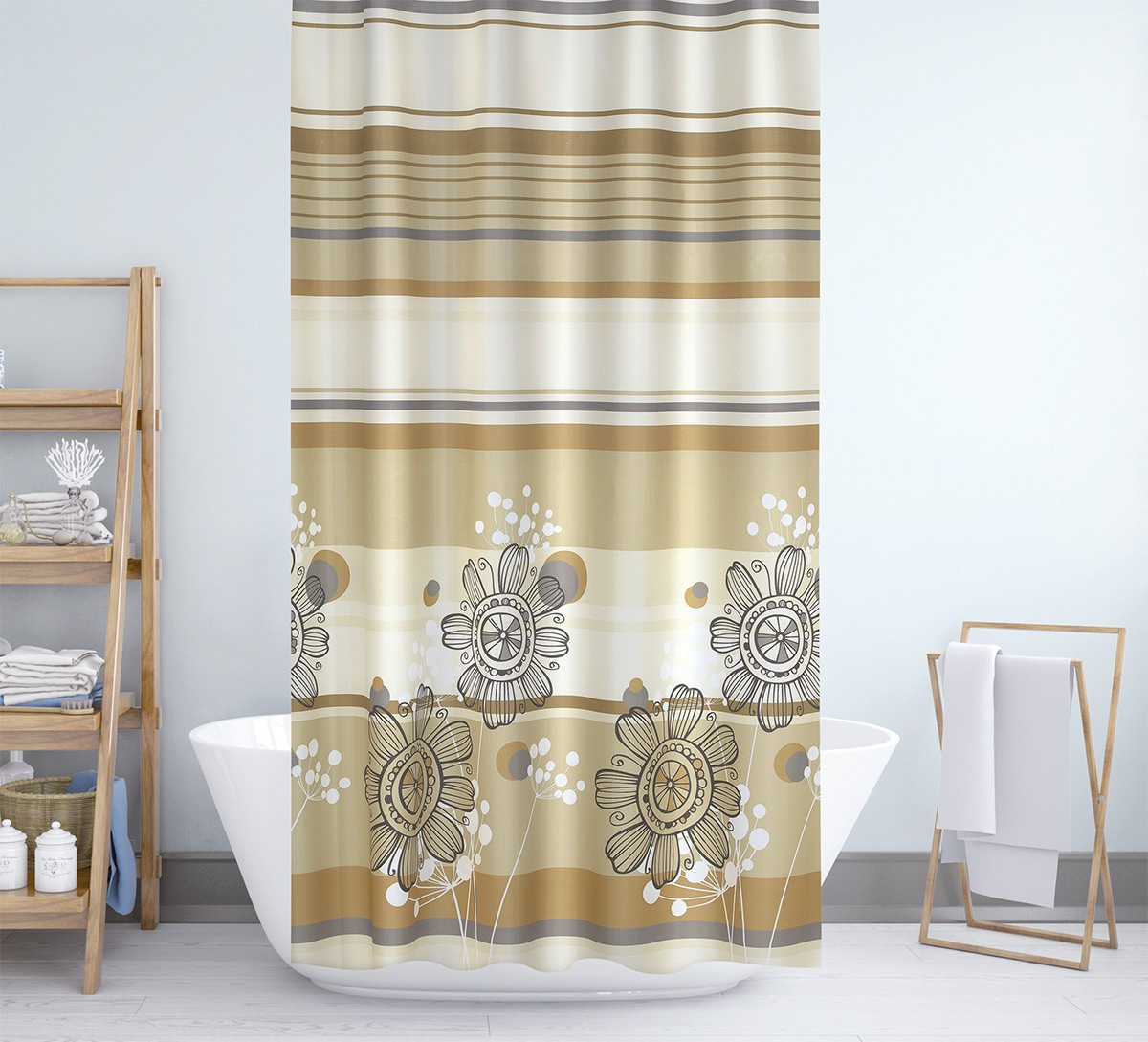 Koupelnový závěs béžové květy