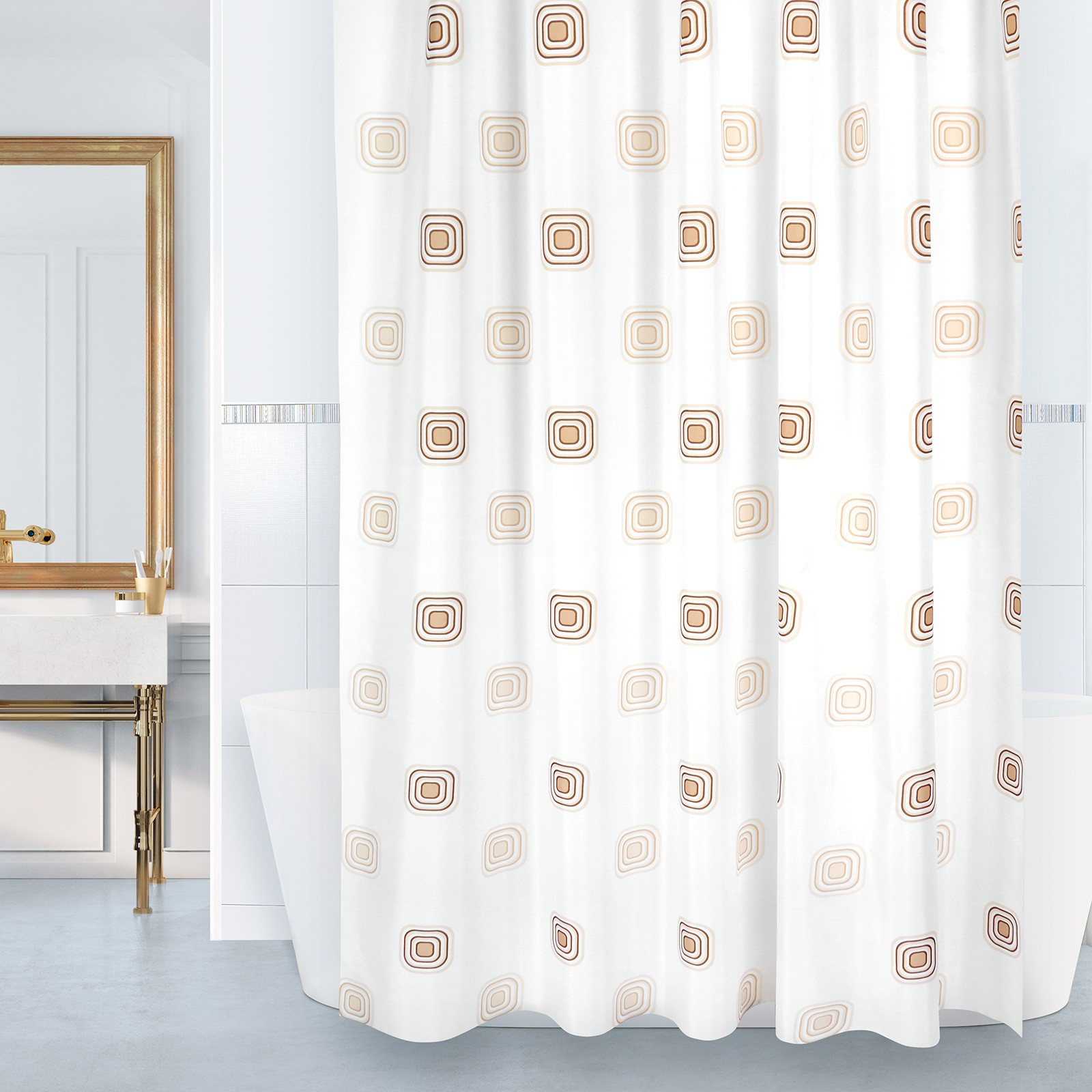 Koupelnový závěs Čtverce béžové