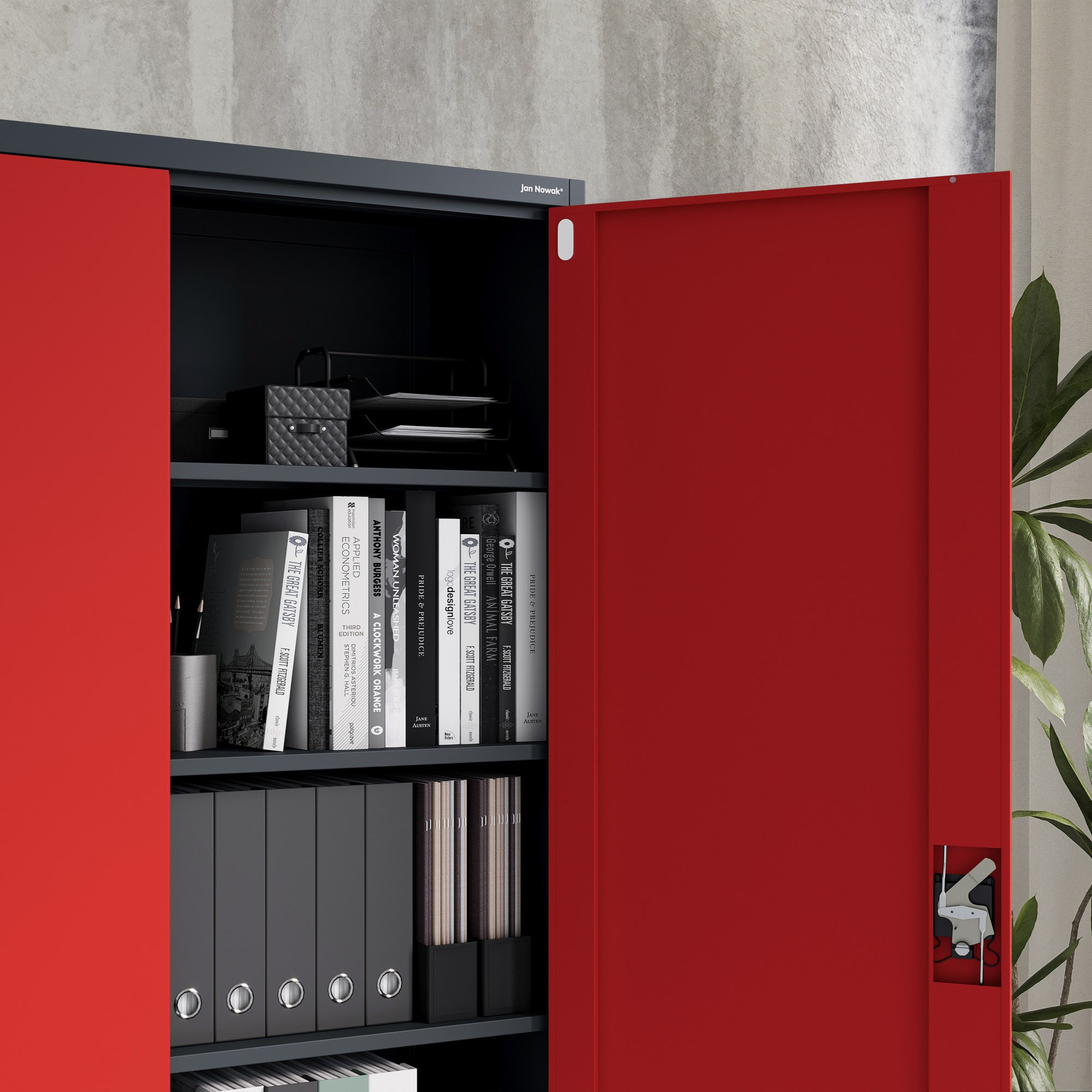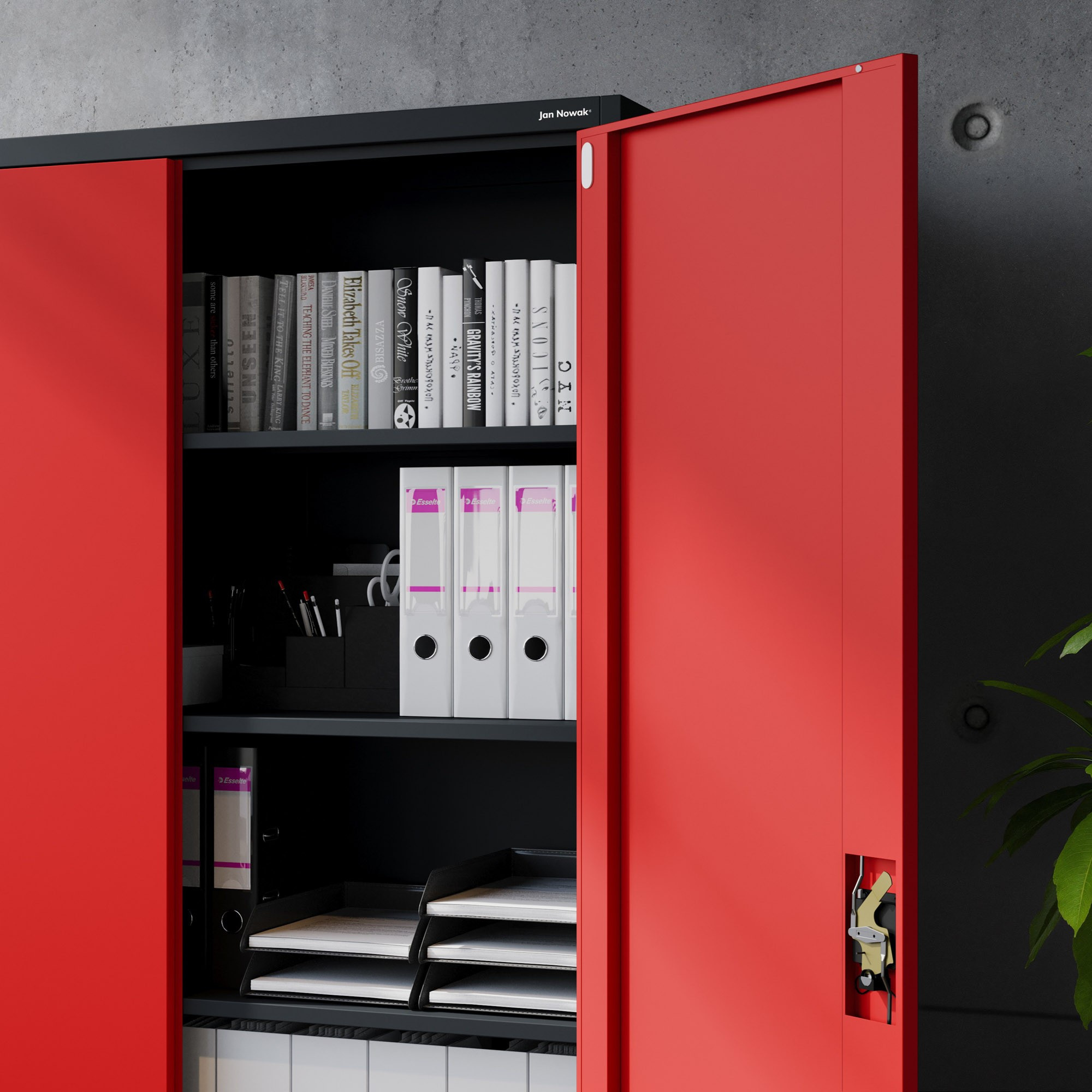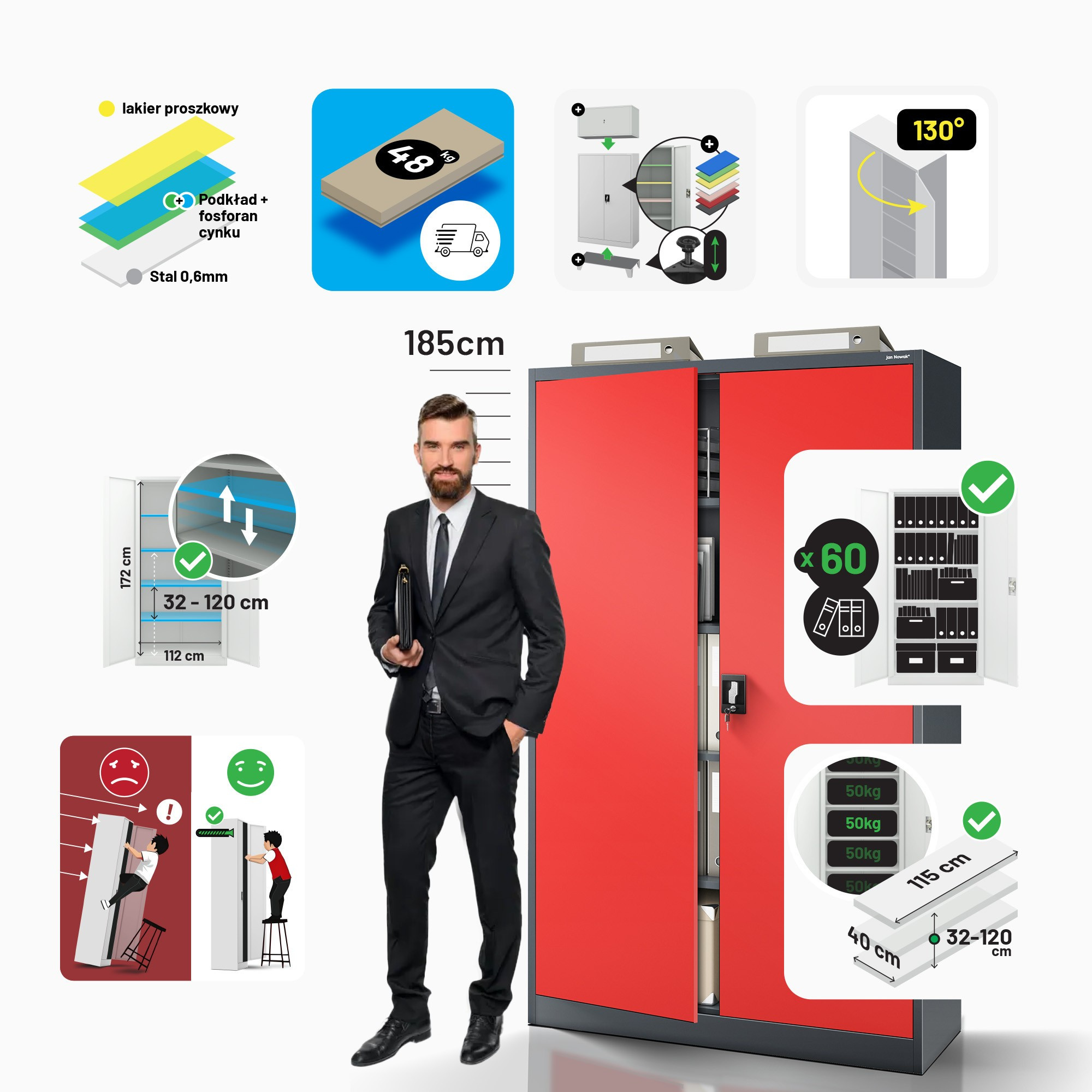 Kancelářská skříň JAN II – Antracitově-červená: Spojení robustnosti a stylu