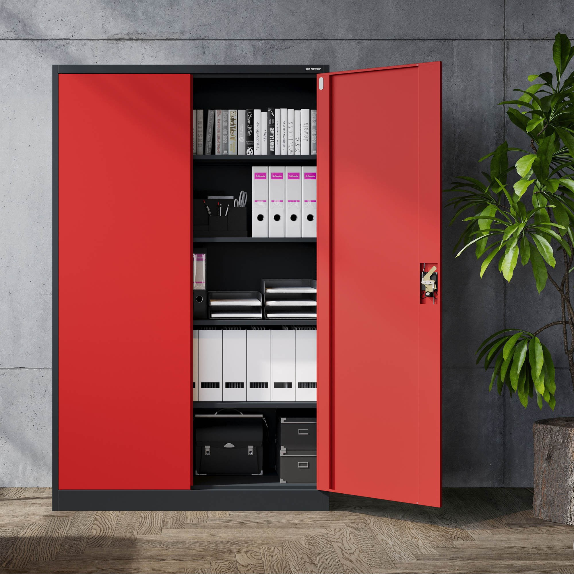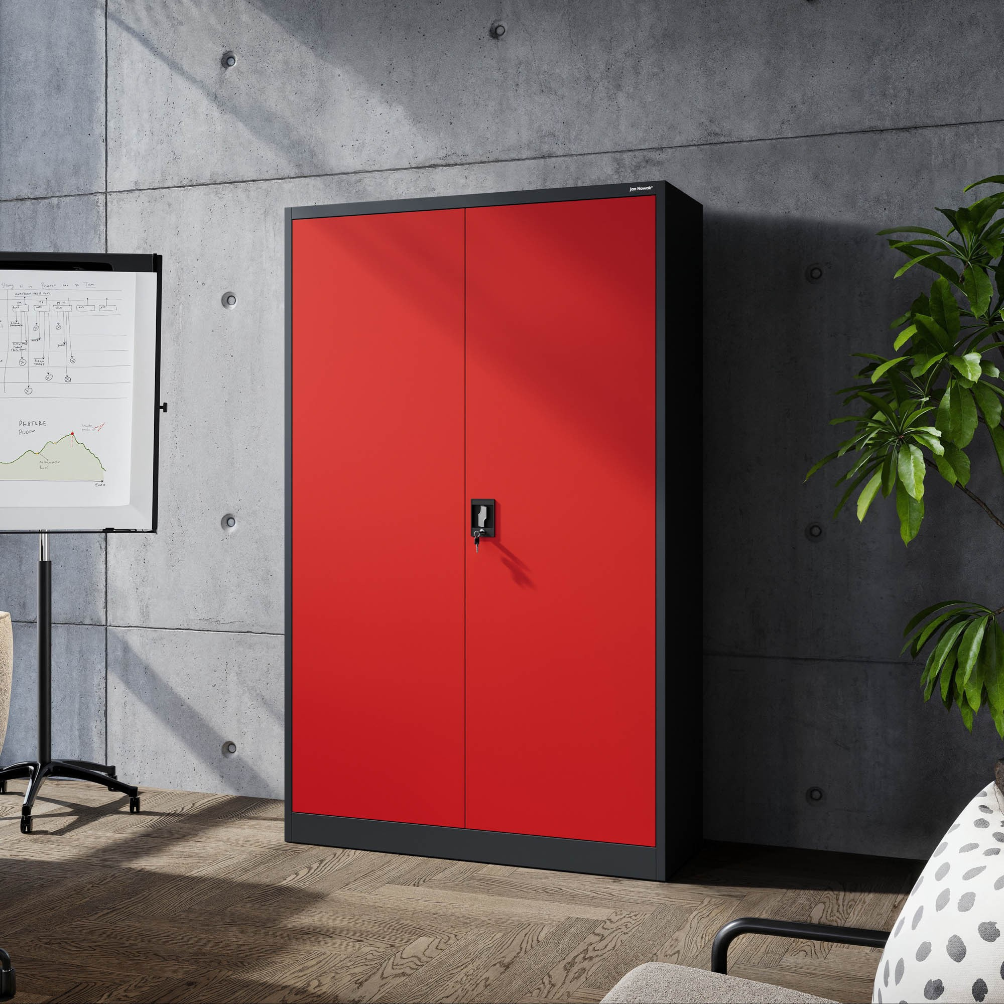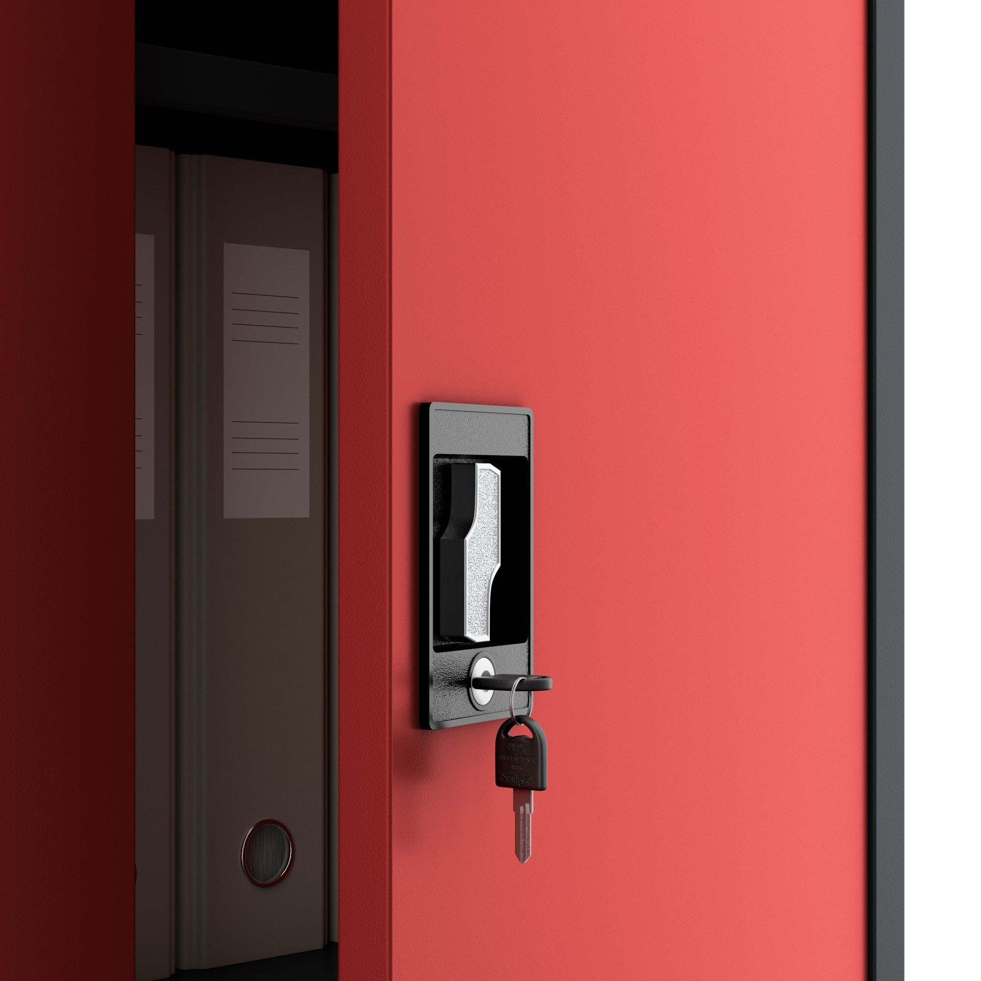 Kancelářská skříň JAN II – Antracitově-červená: Spojení robustnosti a stylu
