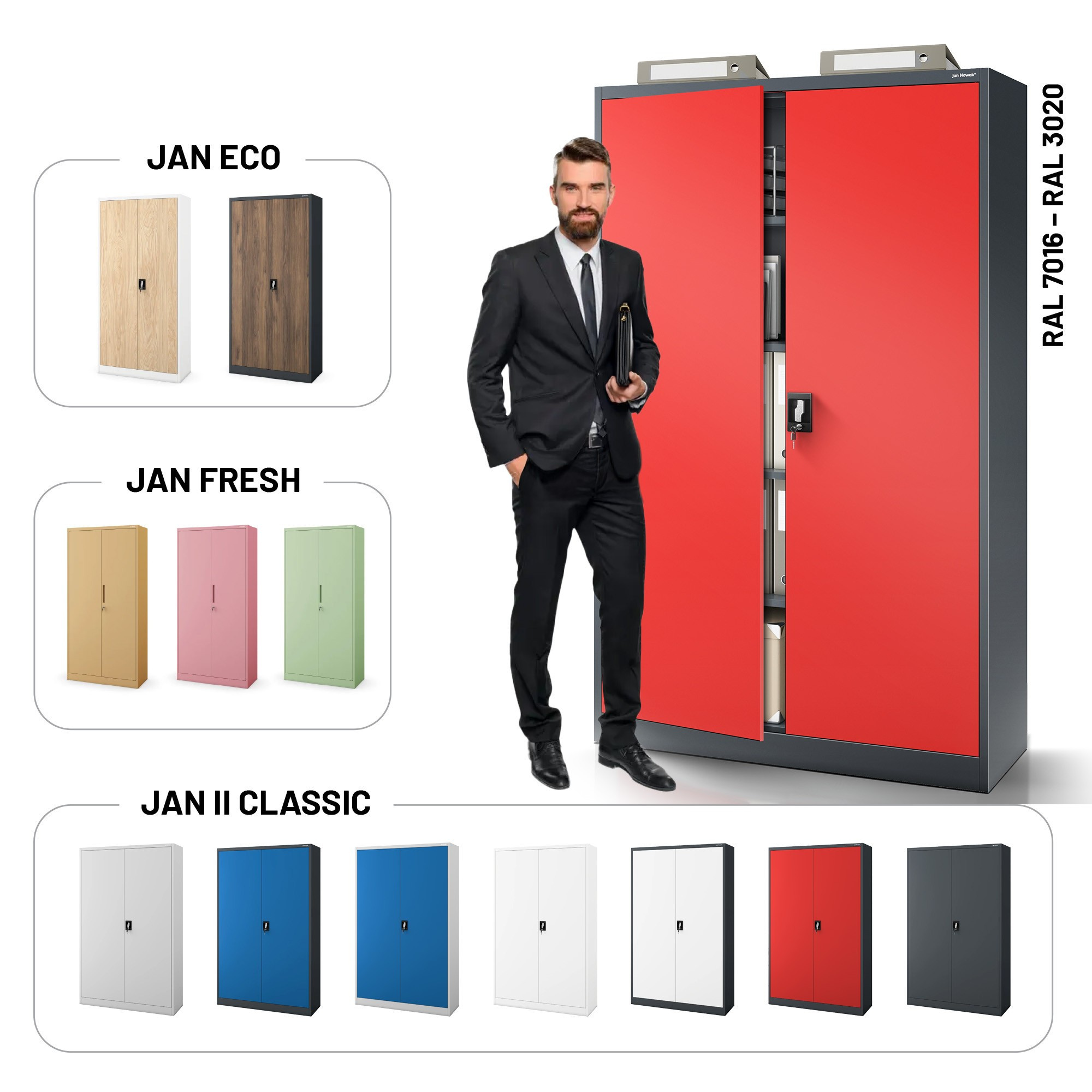Hledáte spolehlivé a stylové řešení pro ukládání dokumentů, nářadí nebo zdravotnického vybavení? Představujeme vám kovovou skříň JAN II z kolekce JAN NOWAK, která kombinuje maximální funkčnost s moderním designem. Tato ocelová skříň je ideální volbou pro kanceláře, úřady, firmy, zdravotnická zařízení, dílny i průmyslové závody.