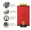 - Odolná konstrukce: Vyrobena z kvalitní oceli o tloušťce 0,6 mm a ošetřena práškovým lakováním, což zajišťuje vysokou odolnost proti mechanickému poškození a korozi.