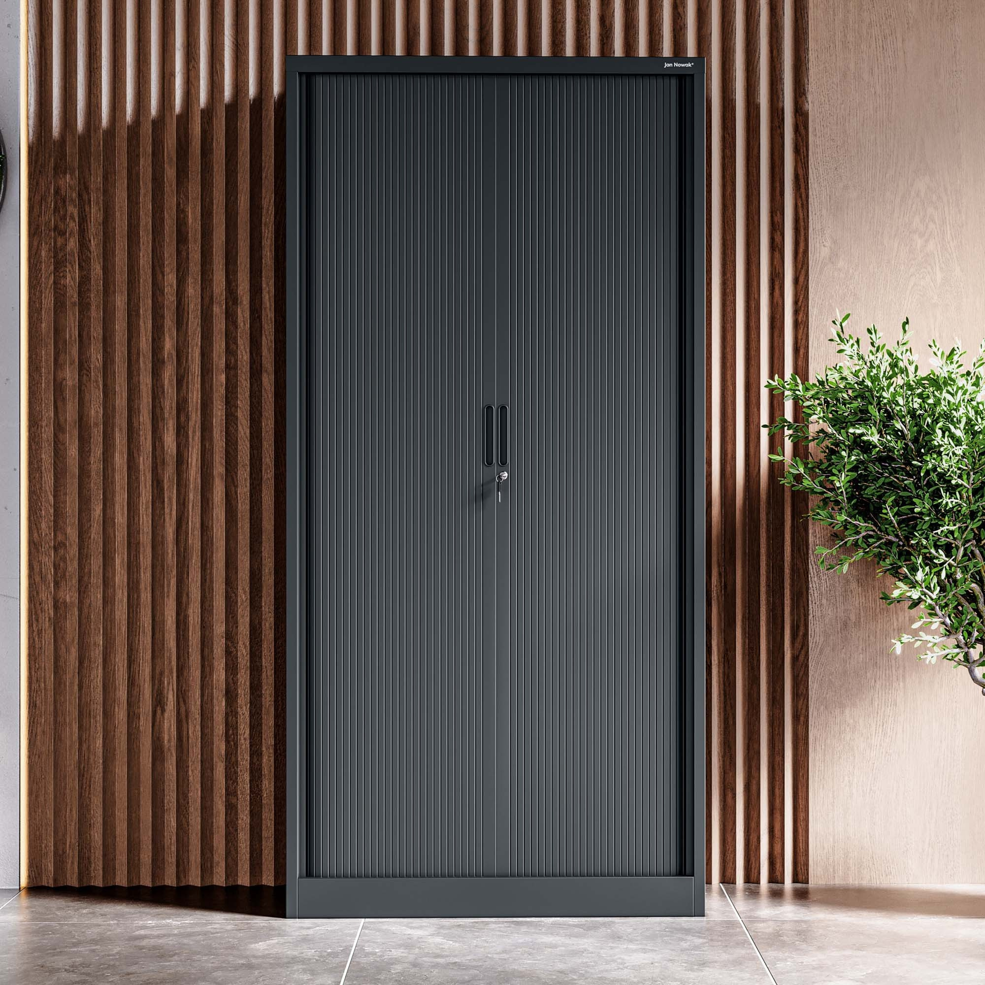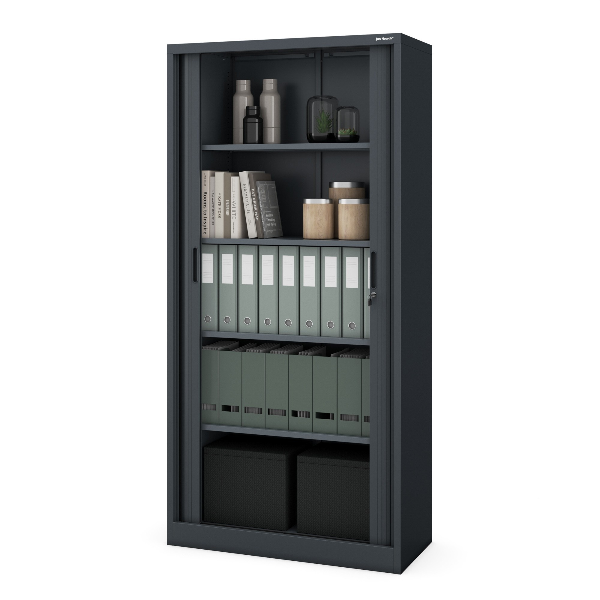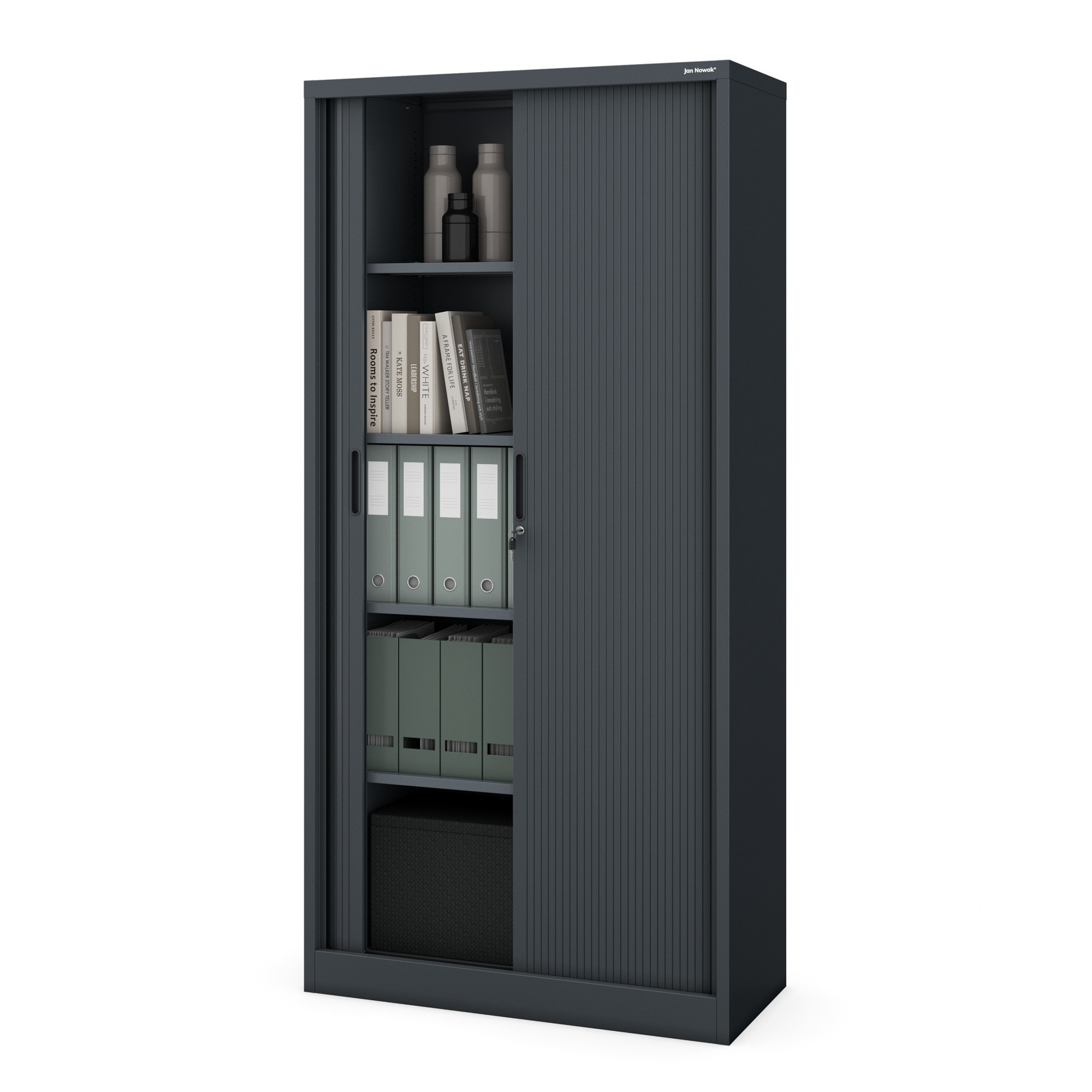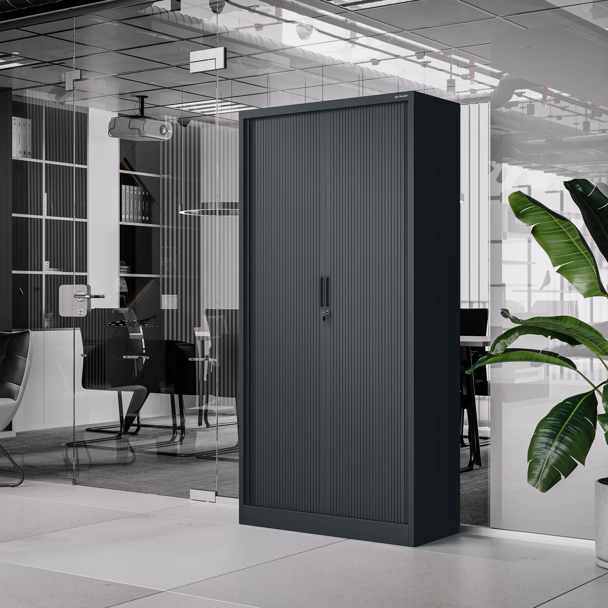 Kovová kancelářská skříň na dokumenty s roletou DAMIAN, 900 x 1850 x 450 mm, antracitová