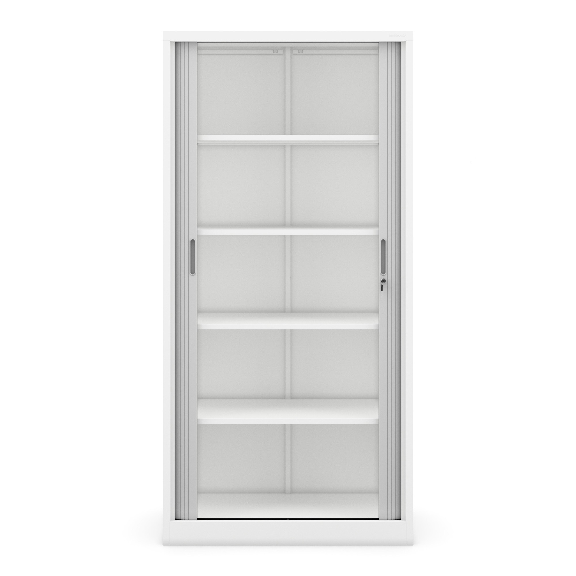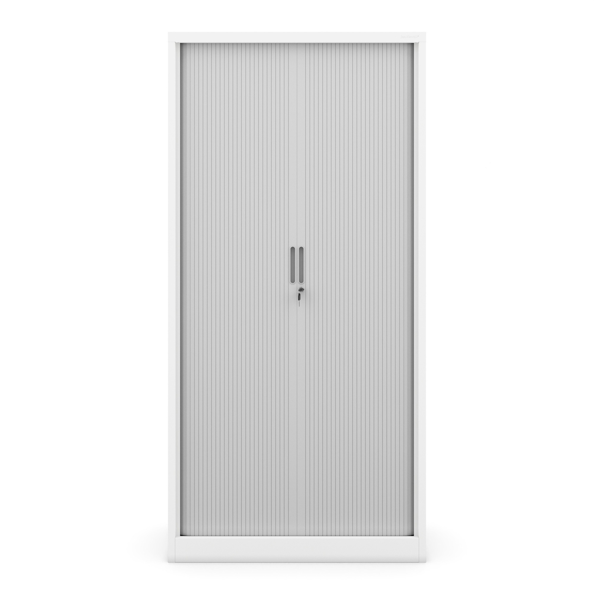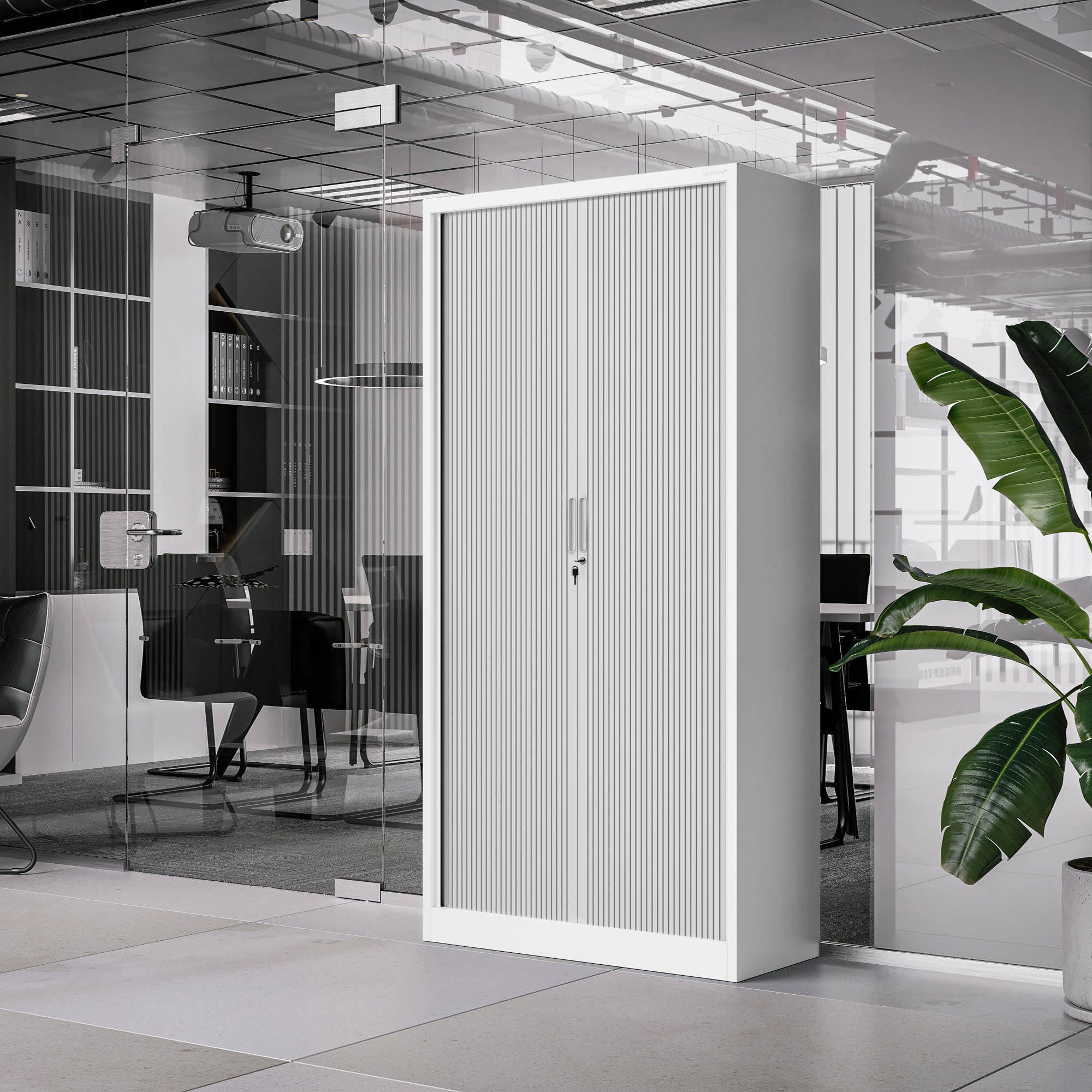 Kovová kancelářská skříň na dokumenty s roletou DAMIAN, 900 x 1850 x 450 mm, bílo-šedá