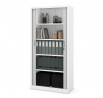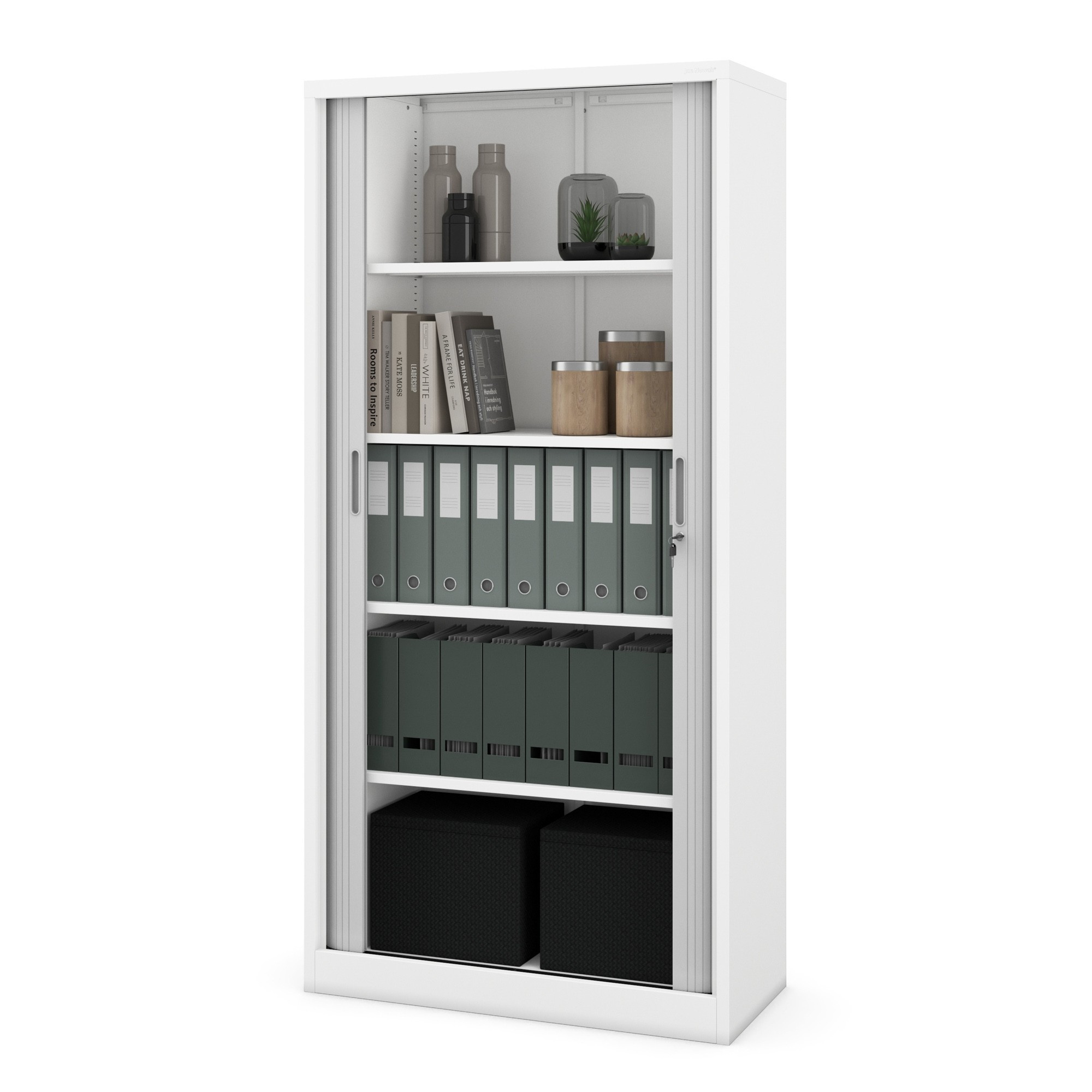Skříň DAMIAN se pyšní minimalistickým a elegantním designem, který se hodí do každého interiéru. Univerzální bílo-šedá barevnost (RAL 9003 - RAL 7035) dodává skříni moderní a profesionální vzhled. Posuvné dveře ve formě rolety šetří prostor a zároveň působí stylově.