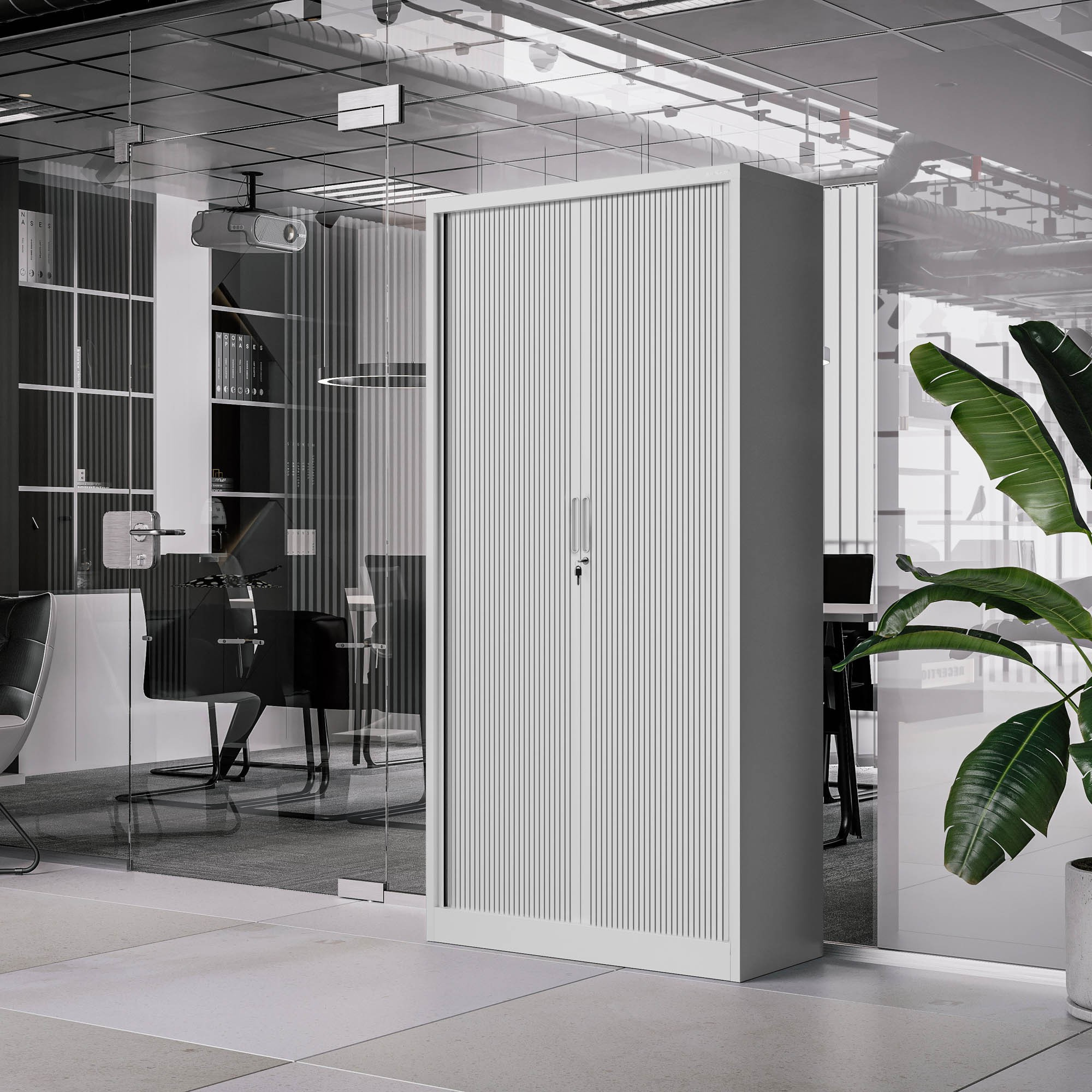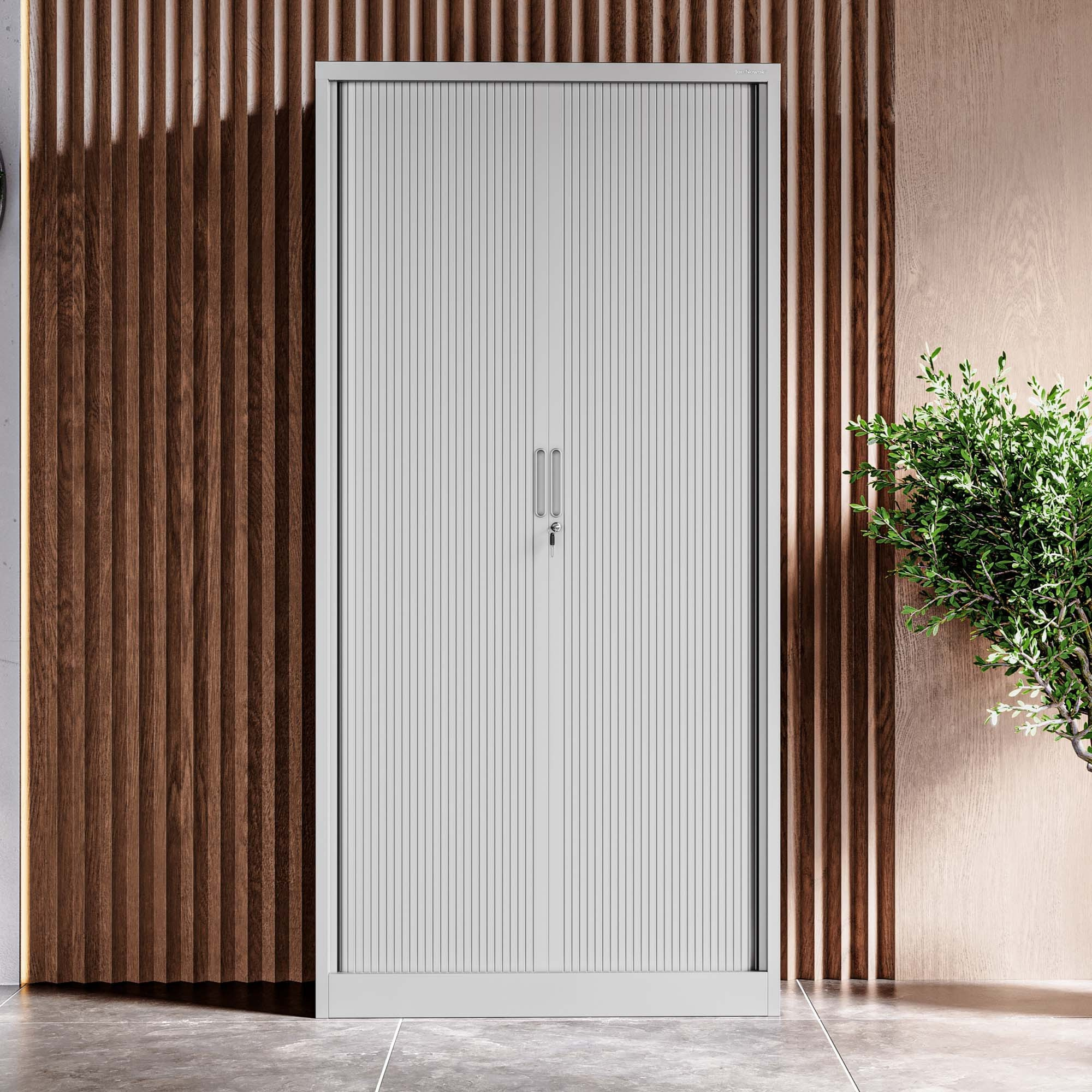 Kovová kancelářská skříň na dokumenty s roletou DAMIAN, 900 x 1850 x 450 mm, šedá