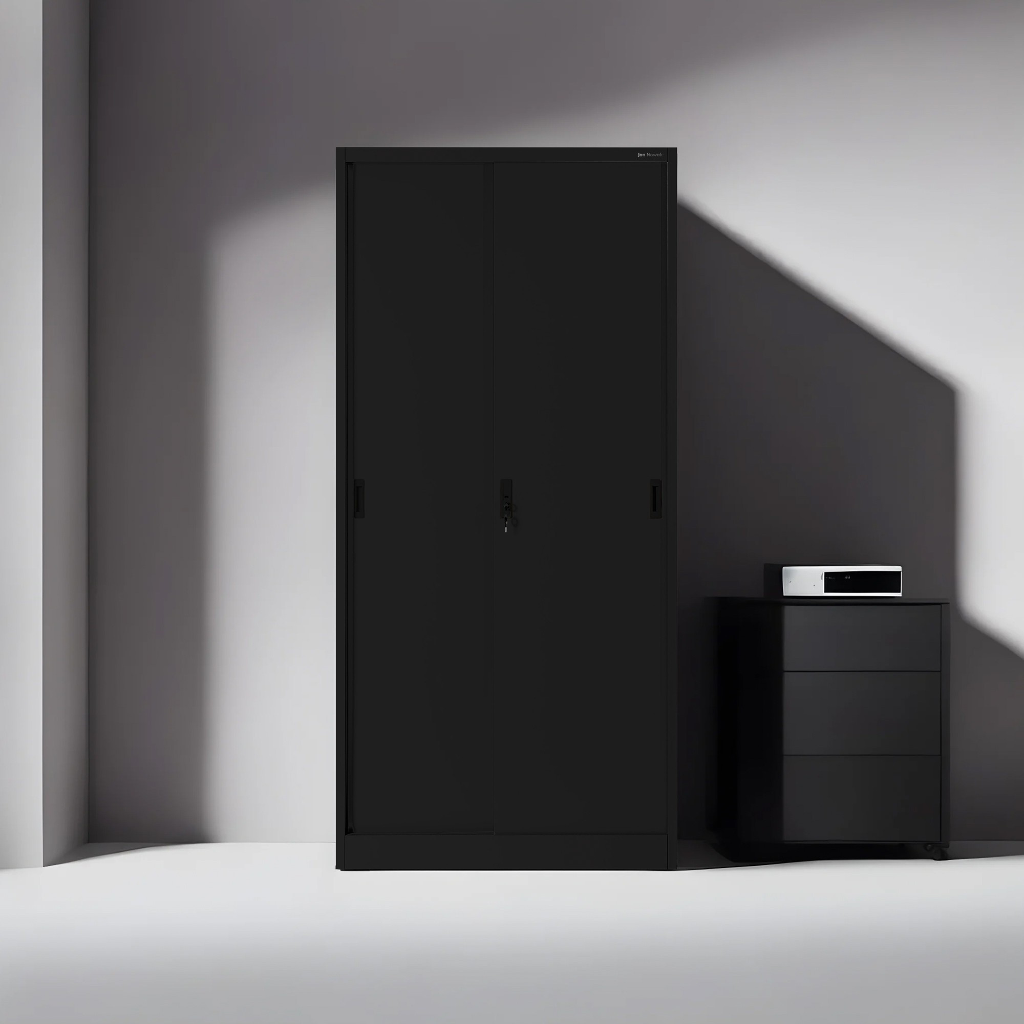 Kovová kancelářská skříň s posuvnými dveřmi KUBA, 900 x 1850 x 400 mm, černá