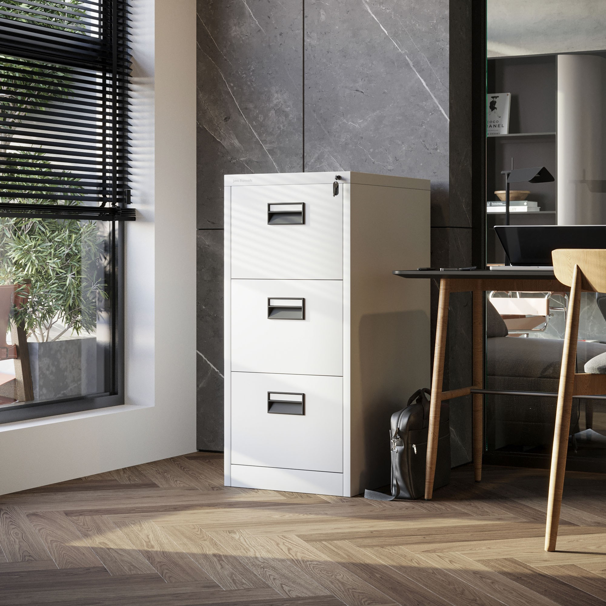 - Optimální úložný prostor: Tři hluboké zásuvky poskytují dostatek místa pro uložení velkého množství dokumentů formátu A4 a dalších.