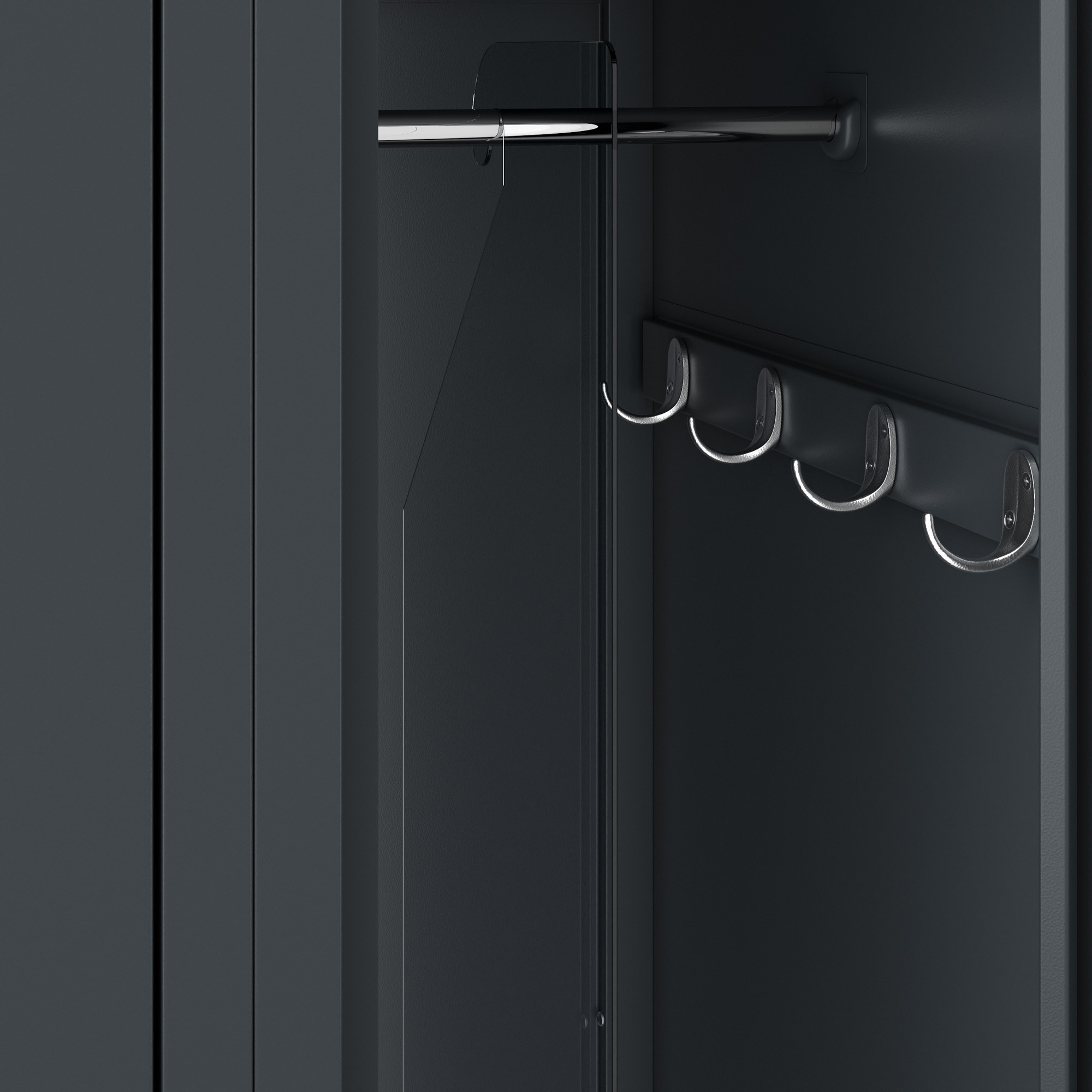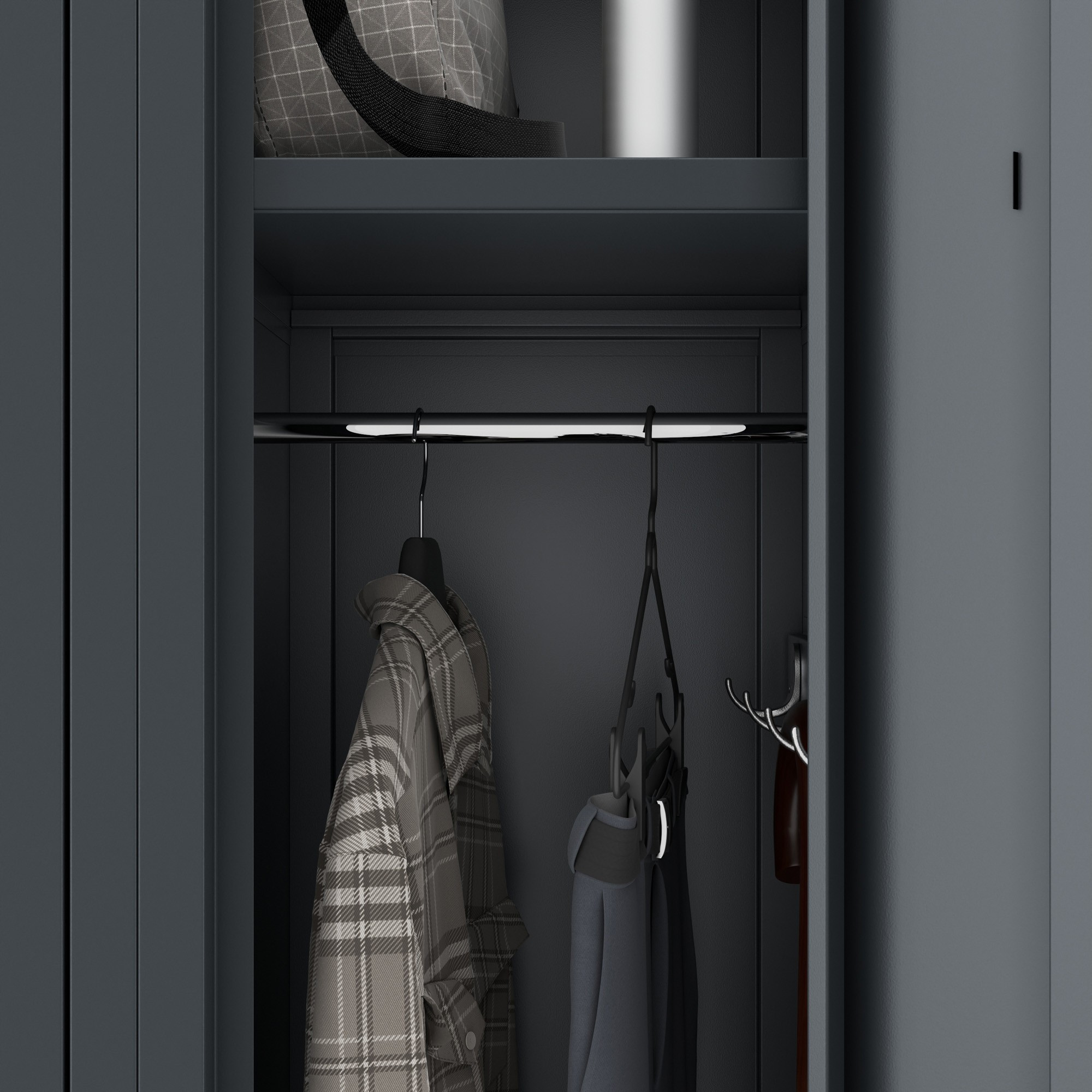 - Antracitová barva: Dodává skříni moderní a elegantní vzhled.