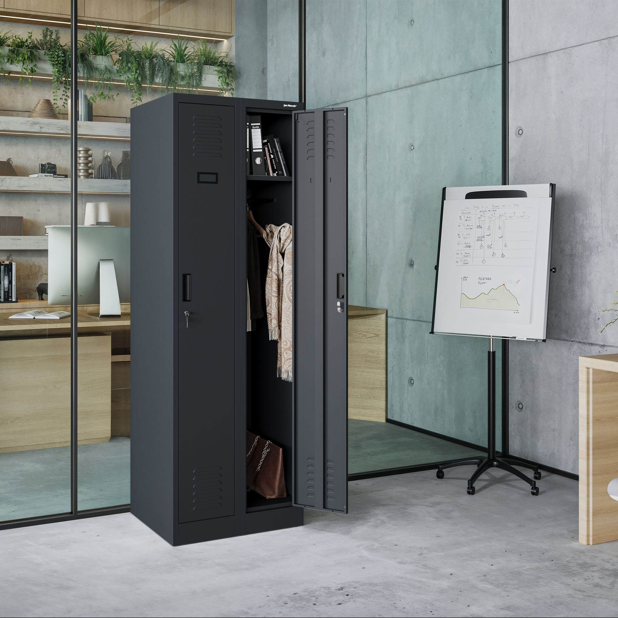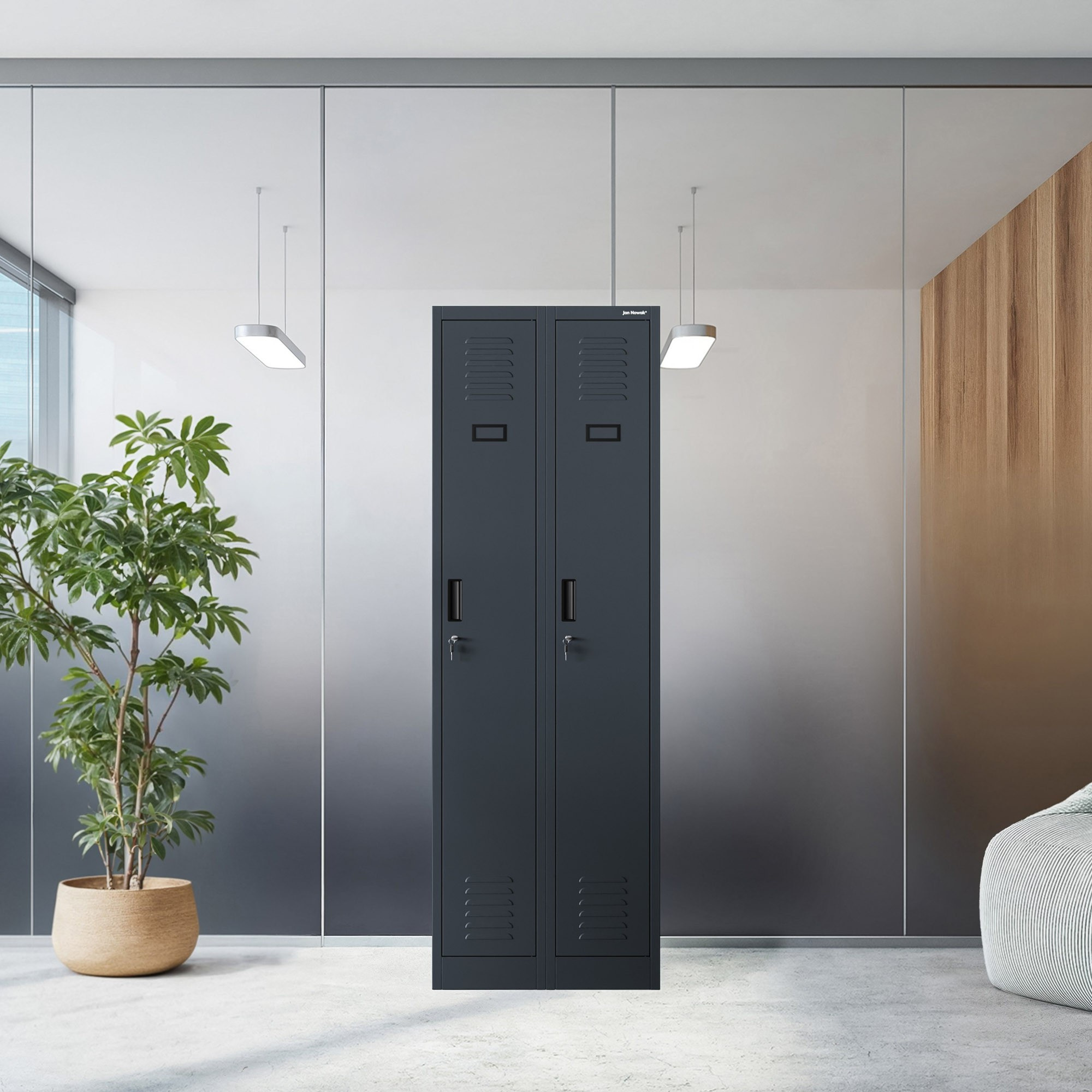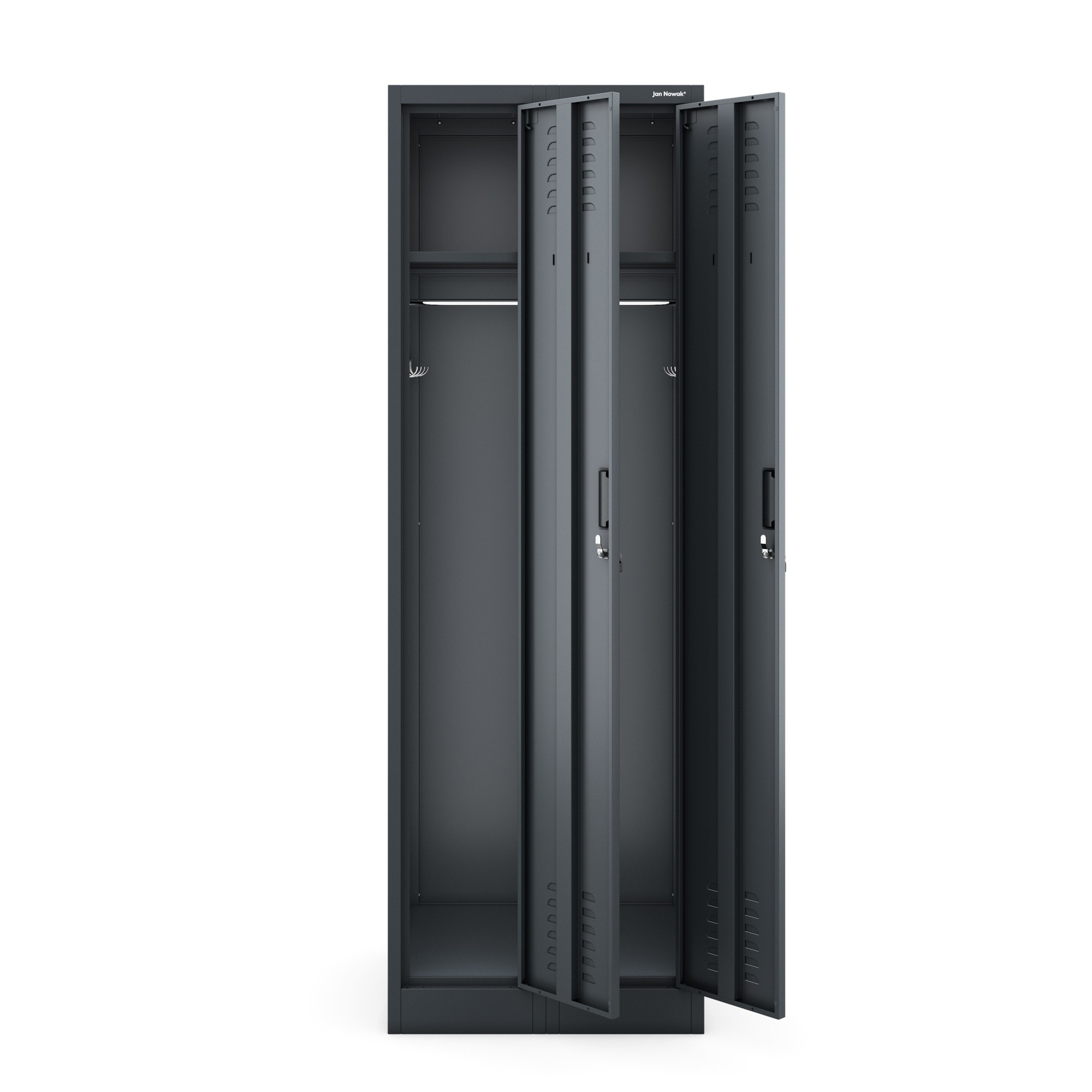 Bezpečnost vašich osobních věcí je pro nás prioritou. Proto je skříň KACPER II vybavena kvalitními zámky na obou dveřích, které zajišťují bezpečné uložení vašich cenností. Můžete si být jisti, že vaše věci jsou v bezpečí a chráněny před neoprávněným přístupem. Dva nezávislé zámky umožňují sdílení skříně dvěma osobami, každá s vlastním zabezpečeným prostorem.