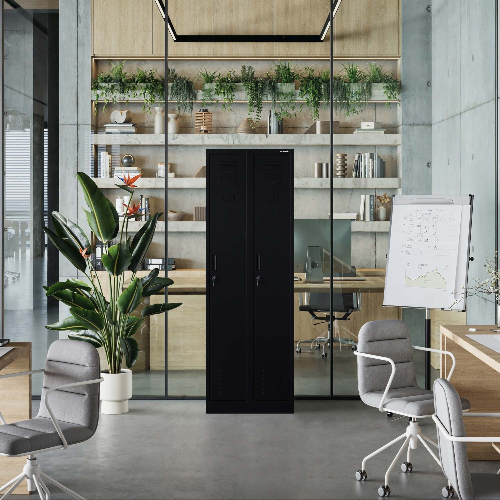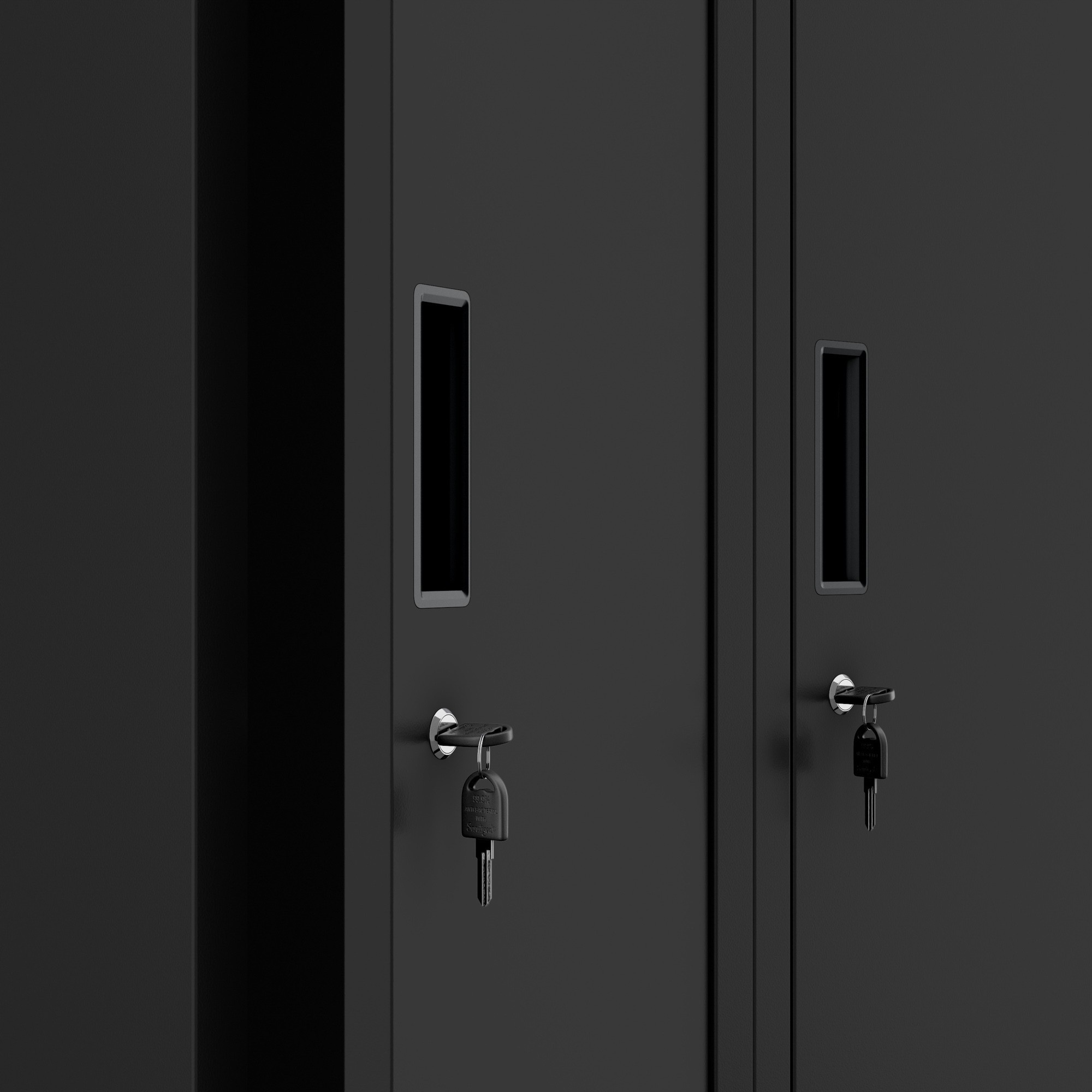 - Bezpečnost a soukromí: Každá komora je vybavena samostatným zámkem, který chrání uložené věci před neoprávněným přístupem. Dva nezávislé zámky umožňují sdílení skříně dvěma osobami, což šetří cenné místo v šatně.