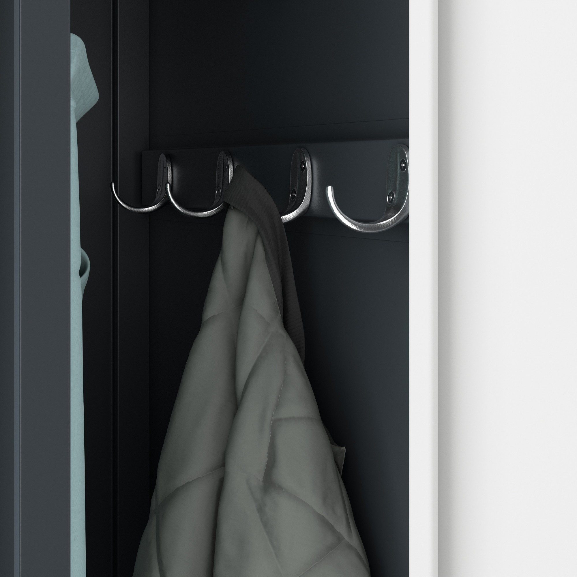 - Háčky na oblečení: Pro zavěšení menších oděvů, jako jsou ručníky nebo šály.