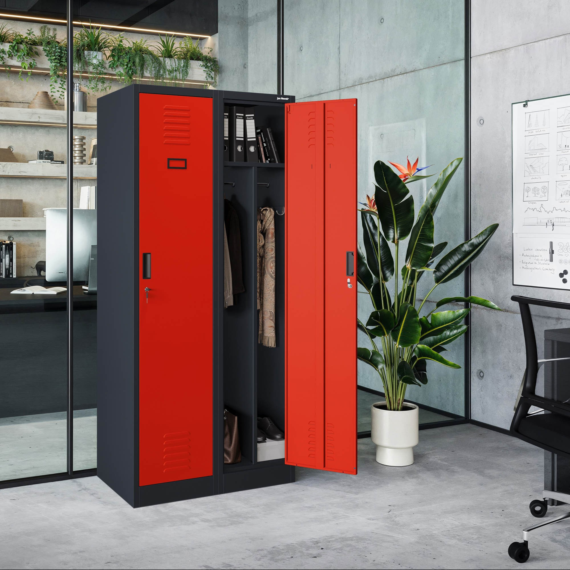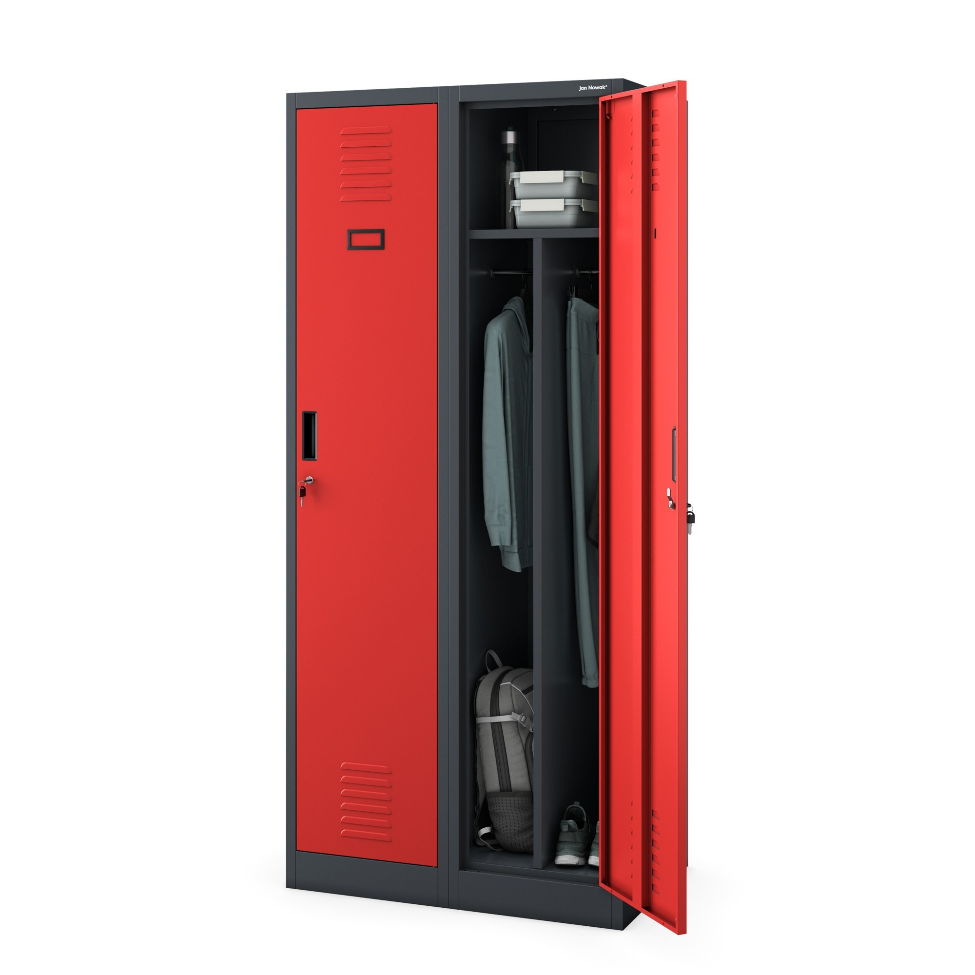 Hledáte spolehlivé a elegantní řešení pro ukládání osobních věcí, dokumentů nebo pracovního vybavení? Představujeme vám sociální skříň KACPER v atraktivní antracitově-červené kombinaci, která se stane nejen praktickým, ale i stylovým doplňkem vašeho interiéru. Ať už potřebujete vybavit šatnu, dílnu, kancelář nebo sociální zařízení, KACPER je tou správnou volbou.