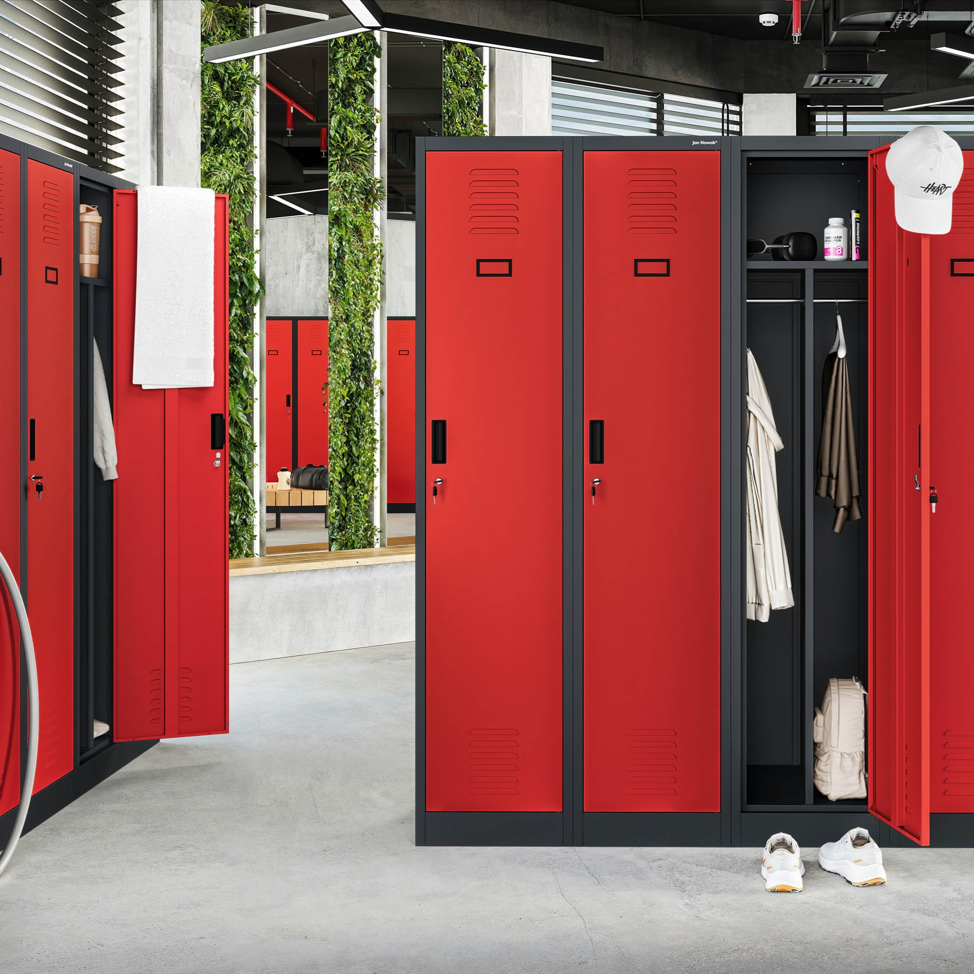 - Průmyslové provozy: Autoservisy a výrobní závody vyžadují odolné a praktické skříně pro pracovní oděvy a nářadí.