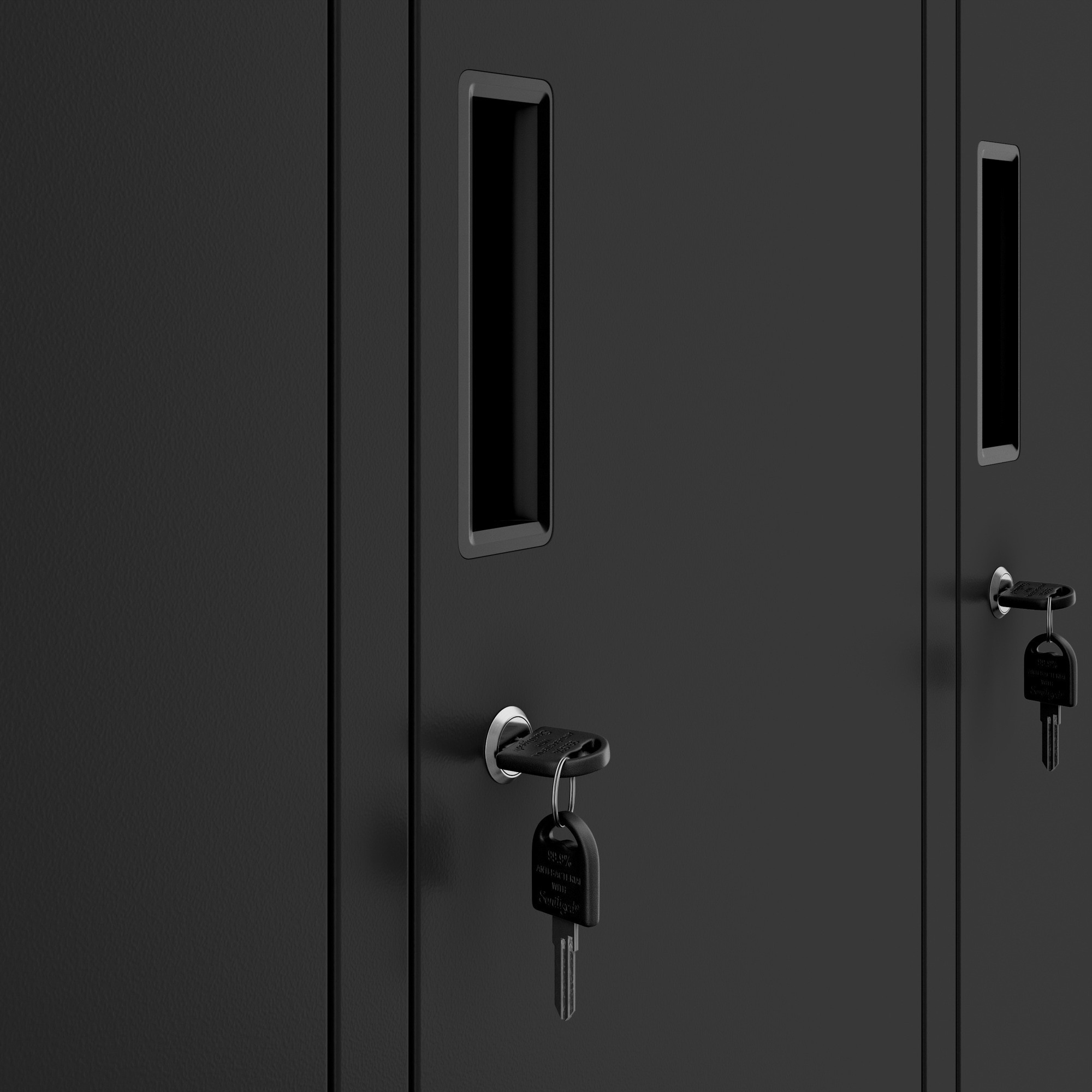 Bezpečnost a soukromí: Každá skříňka je uzamykatelná na klíč, což zajišťuje bezpečné uložení osobních věcí a chrání soukromí uživatelů. Tříbodový zámek poskytuje zvýšenou ochranu proti vloupání.