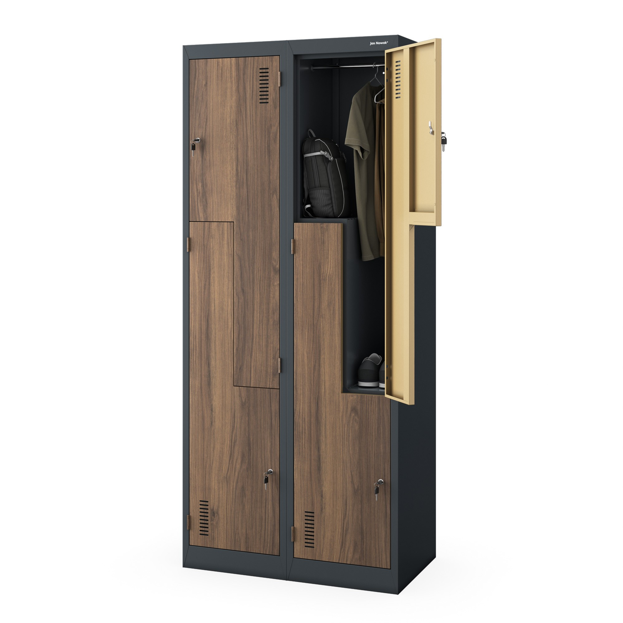 Díky své solidní konstrukci a modernímu designu je model JULIA oblíbenou volbou pro moderní a loftové interiéry. Skvěle se hodí do šaten v bazénech, sportovních zařízeních, kancelářích, školách i zdravotnických zařízeních. Ať už potřebujete úložný prostor pro zaměstnance, studenty nebo návštěvníky, JULIA je tou správnou volbou.