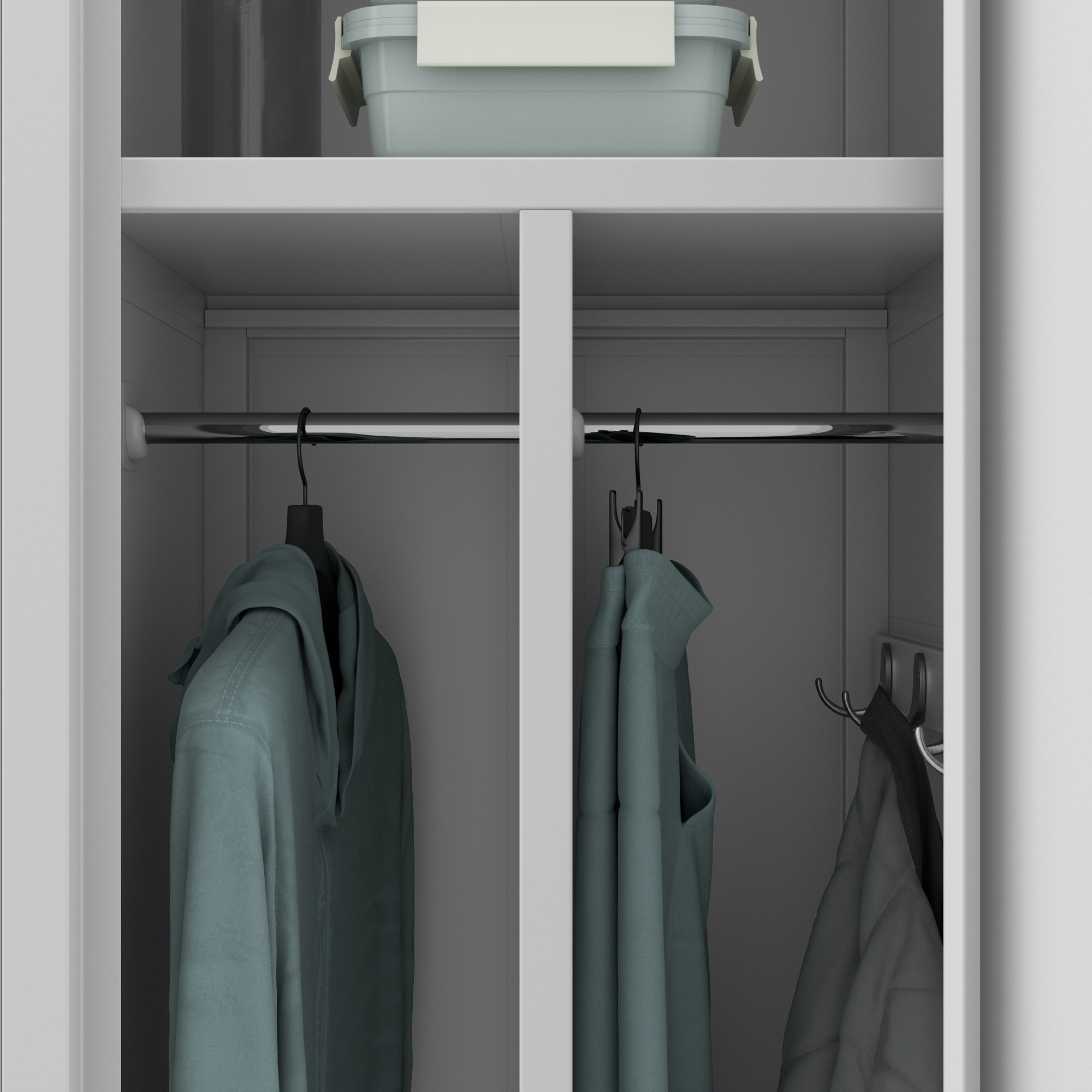 Díky tomuto promyšlenému uspořádání si můžete snadno uspořádat své věci a udržet ve skříni pořádek.