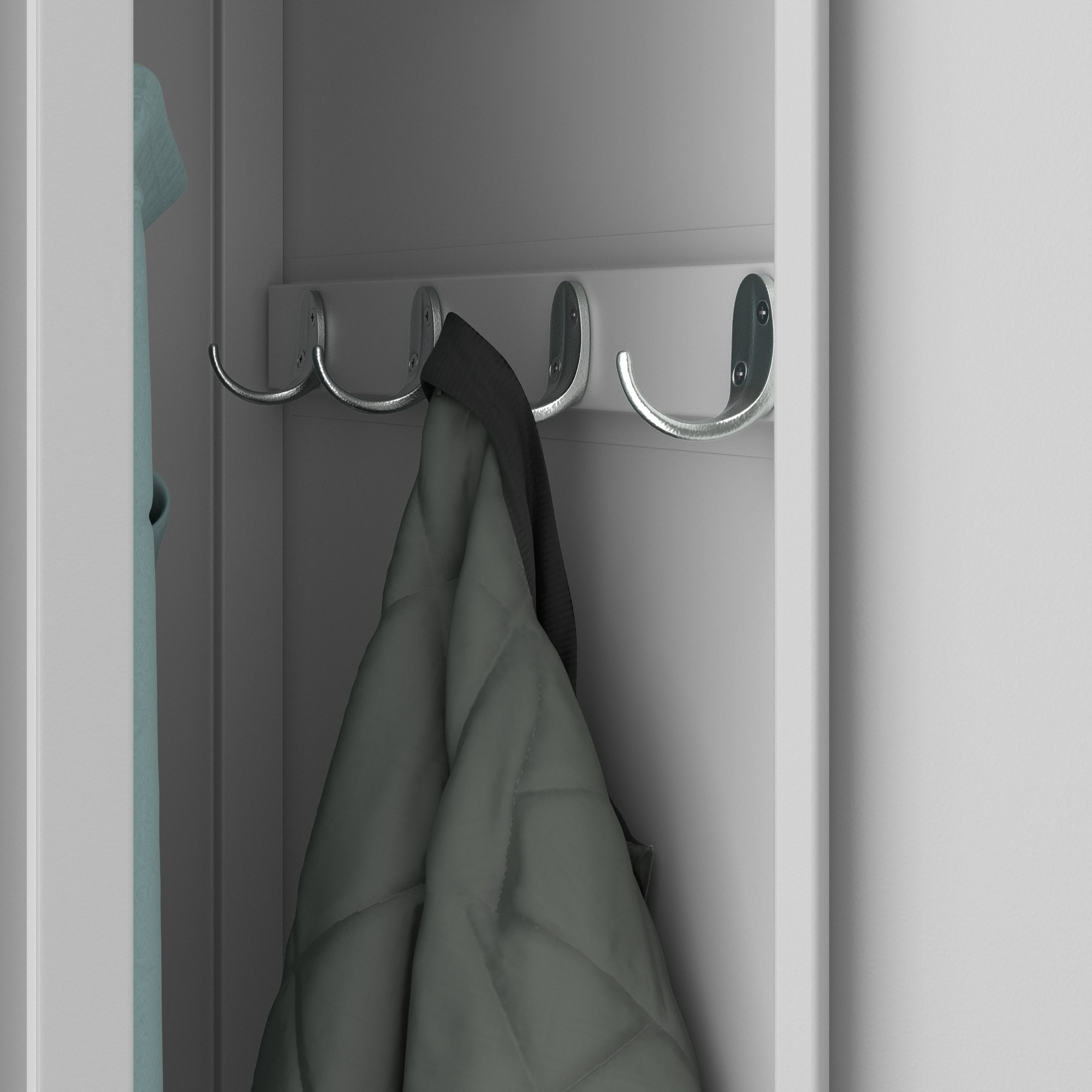 - Háčky na oblečení: Pro zavěšení bund, kabátů a dalších oděvů.