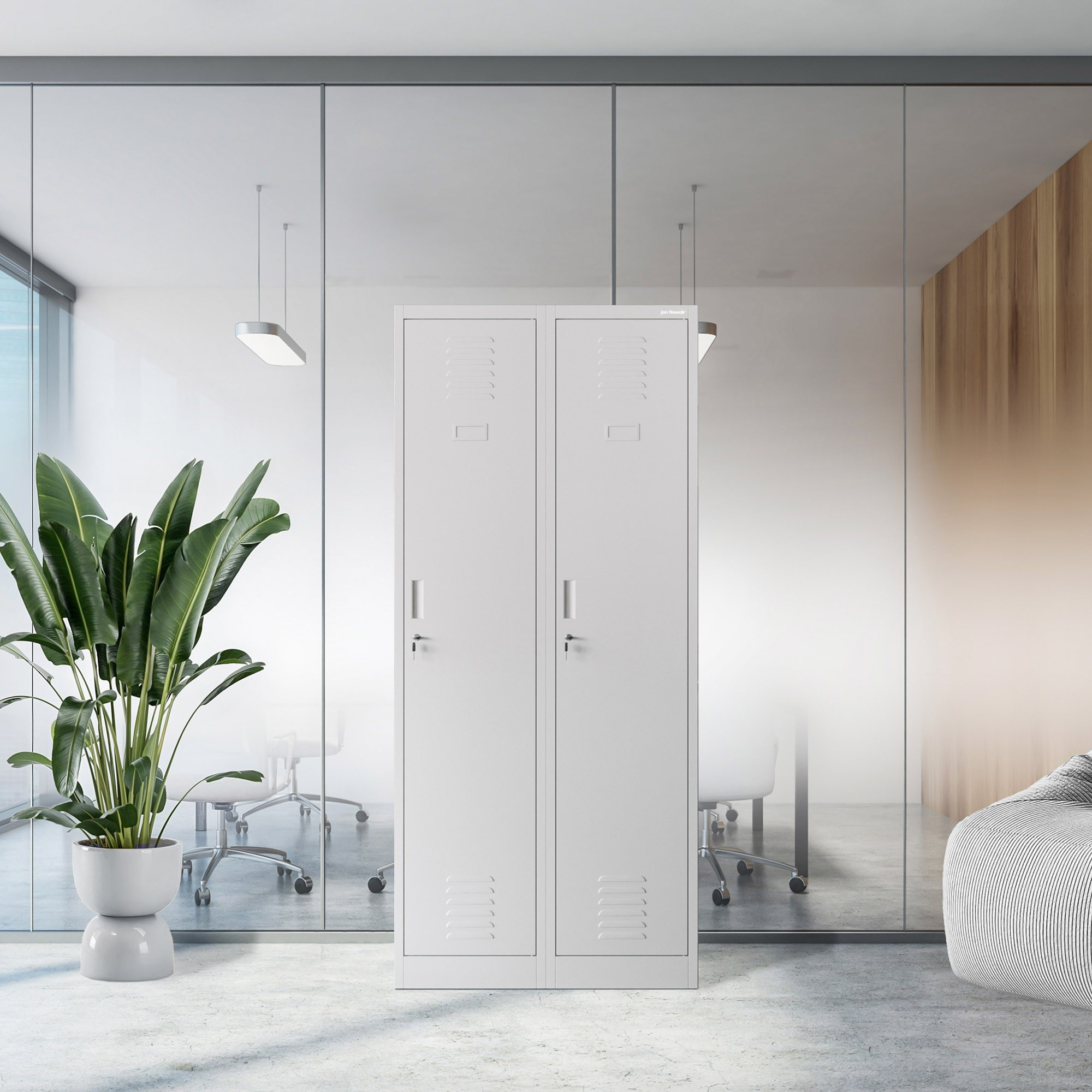 Skříň KACPER se vyznačuje minimalistickým a nadčasovým designem, který se snadno hodí do jakéhokoliv interiéru. Šedá barva (RAL 7035) je elegantní a neutrální, takže se skříň snadno kombinuje s ostatním nábytkem a vybavením. Skříň KACPER je tak nejen praktickým, ale i estetickým doplňkem vašeho prostoru.