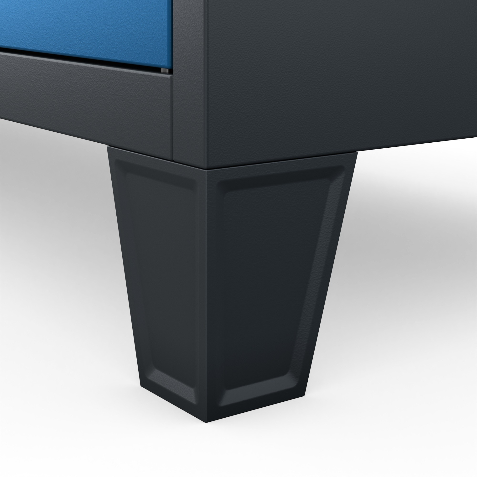 Skříň ROBERT se vyznačuje moderním a elegantním designem v antracitově modré barvě. Tato barva se hodí do většiny interiérů a dodává skříni profesionální vzhled. Práškové lakování zajišťuje trvanlivost barvy a odolnost proti poškrábání.