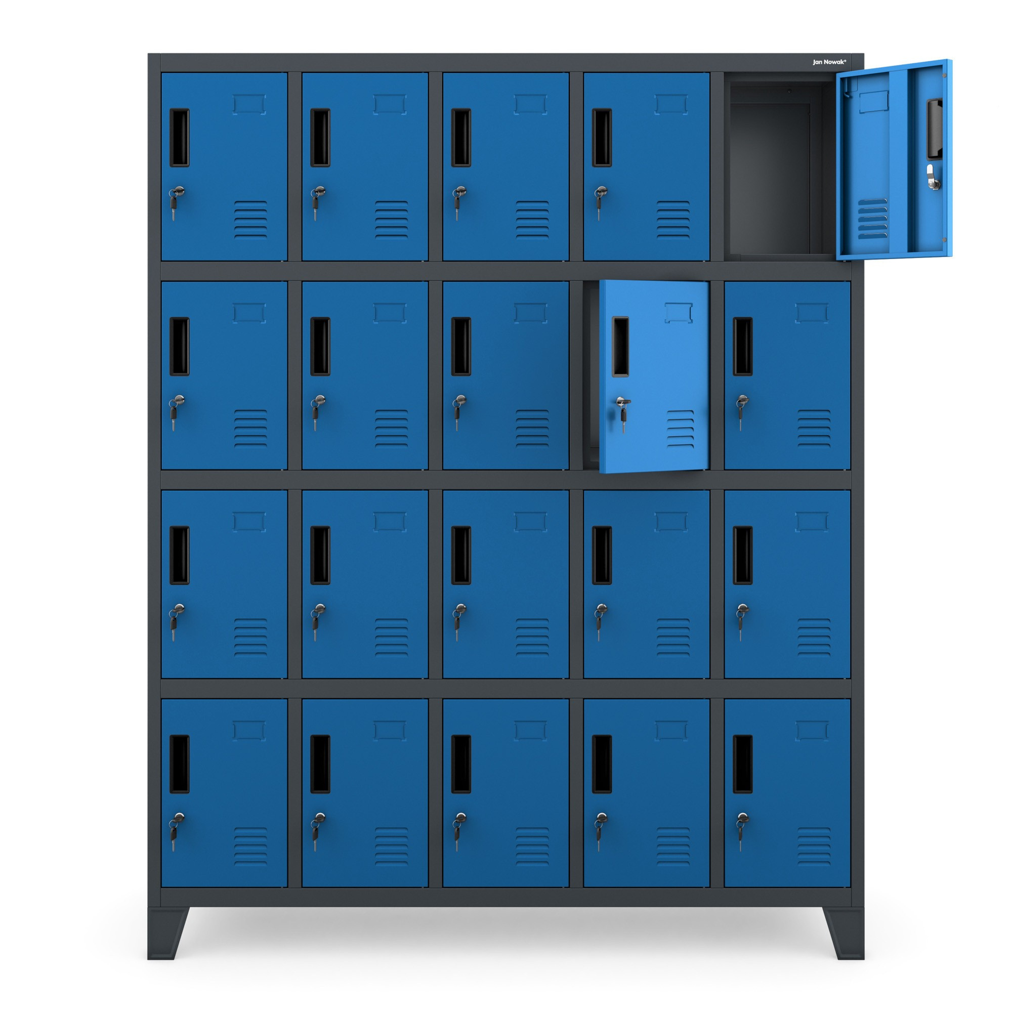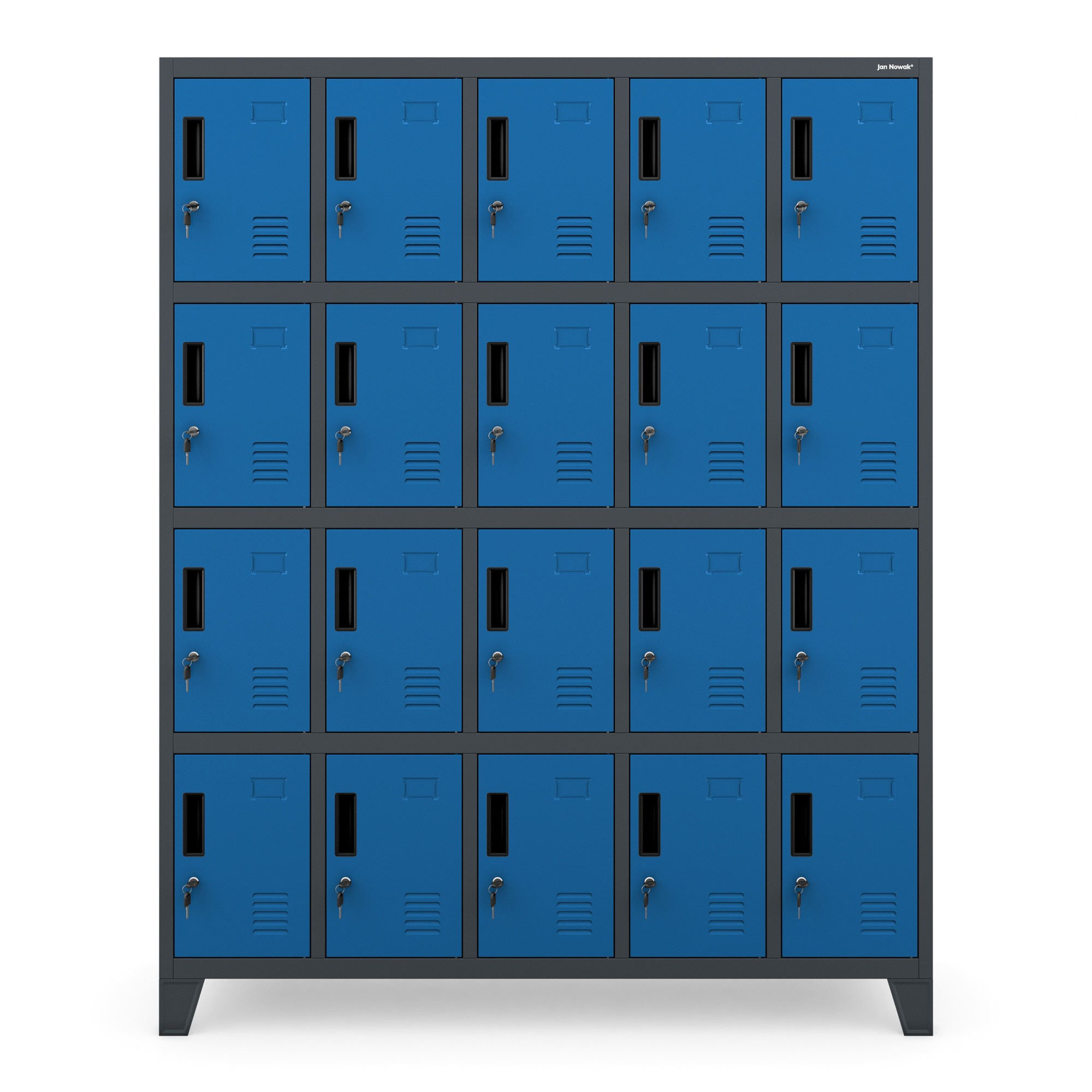 Skříň ROBERT nabízí 20 samostatných schránek, které poskytují dostatek prostoru pro uložení oblečení, obuvi, tašek, batohů a dalších osobních věcí. Každá schránka má rozměry 36 x 24 x 45 cm, což umožňuje pohodlné uložení i větších předmětů. Díky tomuto praktickému rozdělení na přihrádky je skříň ROBERT ideální pro šatny s omezeným prostorem.