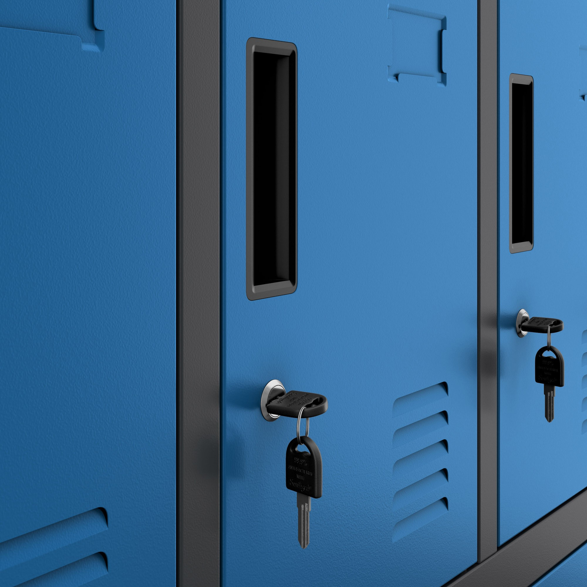 Každá schránka skříně ROBERT je vybavena jednobodovým zámkem, který zajišťuje bezpečné uložení osobních věcí. Ke každému zámku jsou dodávány dva klíče, takže máte vždy k dispozici náhradní klíč v případě ztráty. Uzamykatelné schránky poskytují klid a jistotu, že vaše věci jsou v bezpečí.