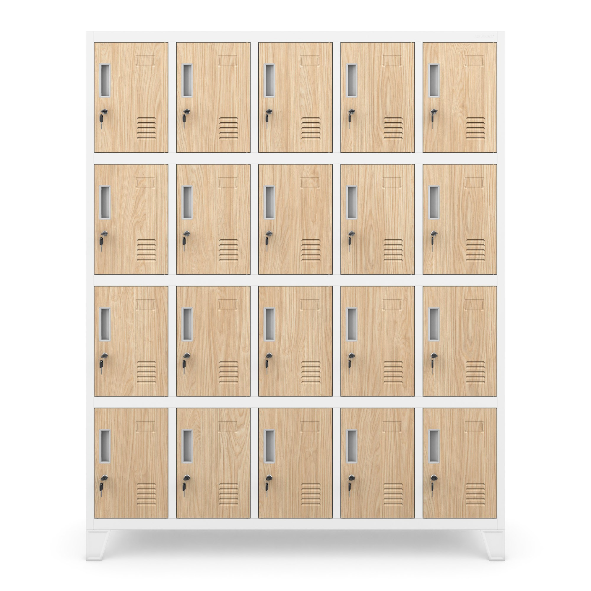 Skříň ROBERT nabízí 20 samostatných přihrádek, které poskytují dostatek prostoru pro uložení oblečení, obuvi, tašek, batohů a osobních věcí. Každá přihrádka má rozměry 36 x 24 x 45 cm, což zaručuje pohodlné uložení i větších předmětů.
